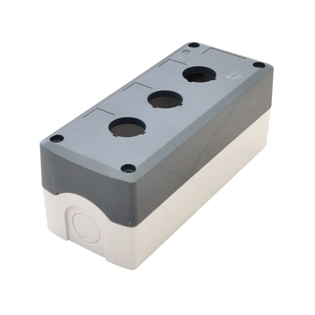 Összeállított tokozat nyomógombokhoz, szürke, 3-as 22,5mm IP65, 2×PG-13,5 NYGD-3GR Tracon