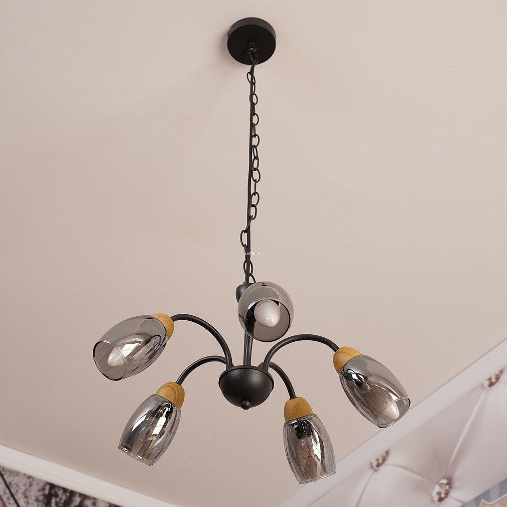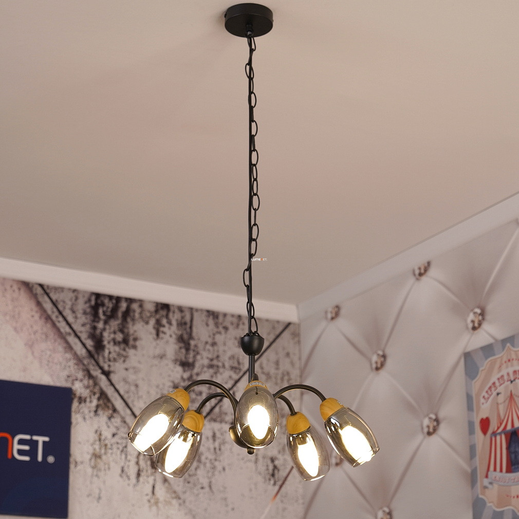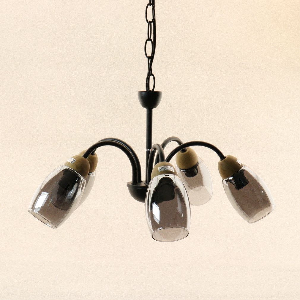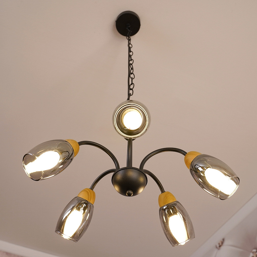 Öt karos csillár, fekete-füstszínű - Gerly Globo 60297-5H