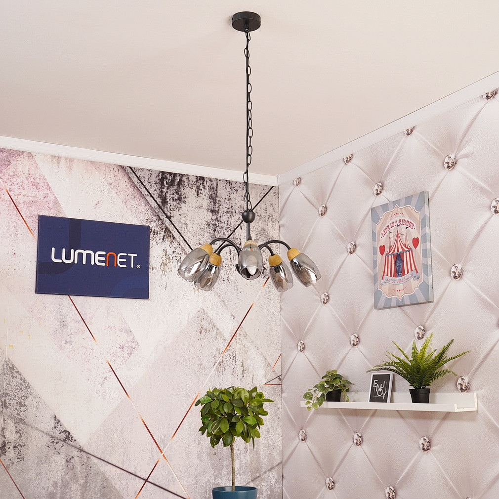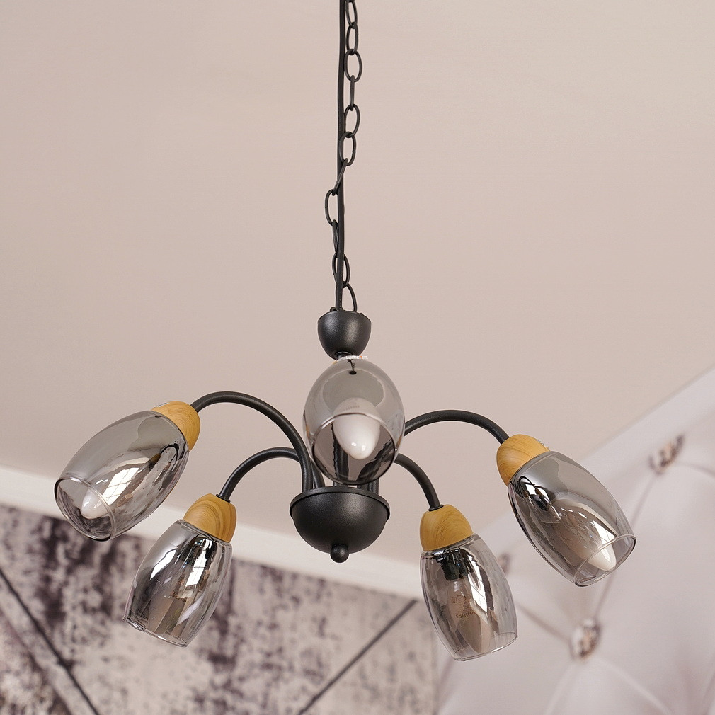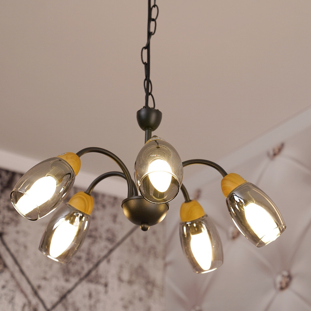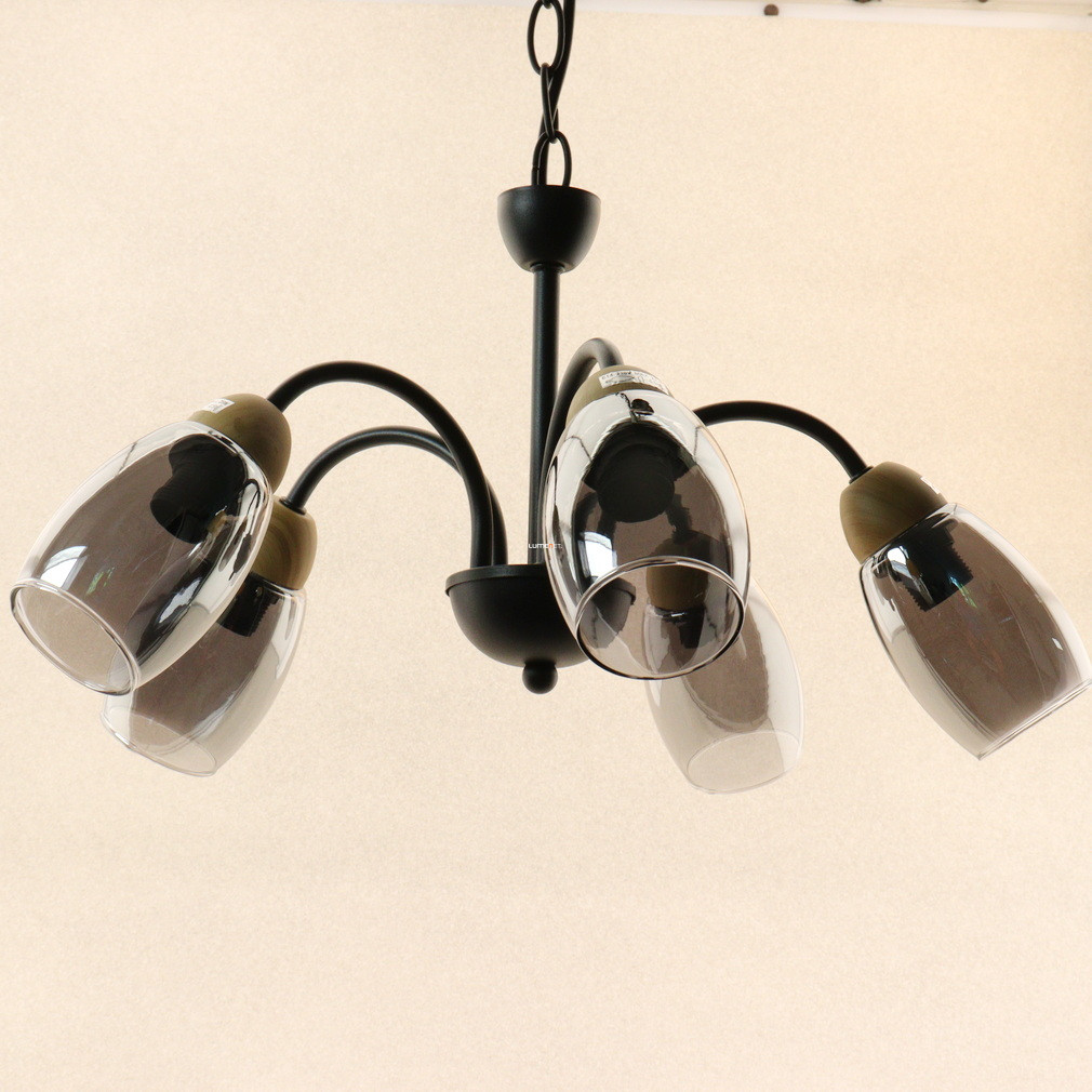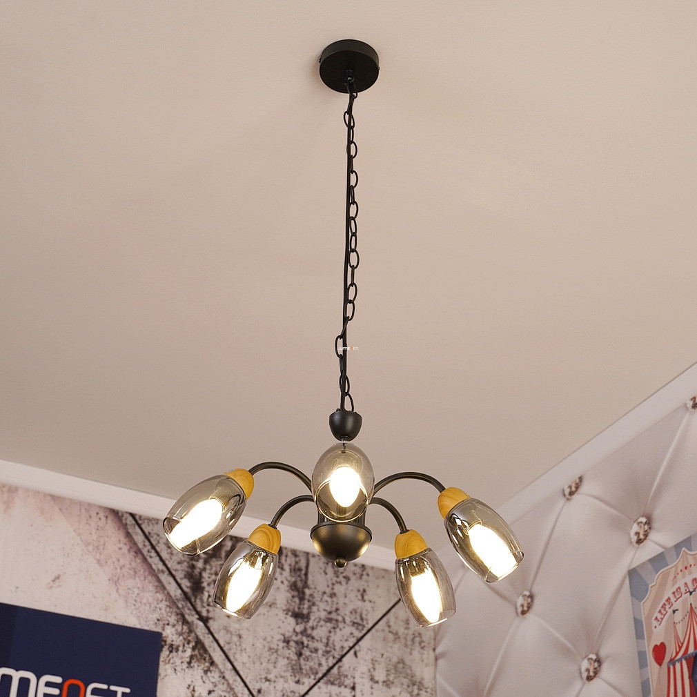 Öt karos csillár, fekete-füstszínű - Gerly Globo 60297-5H