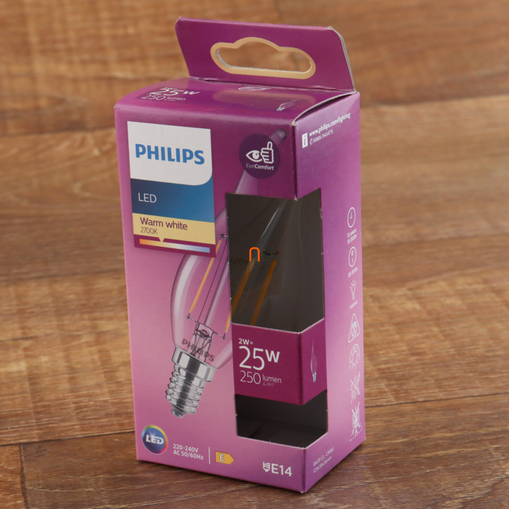 Philips E14 LED 2W 250lm 2700K melegfehér sz.gyertya - 25W izzó helyett