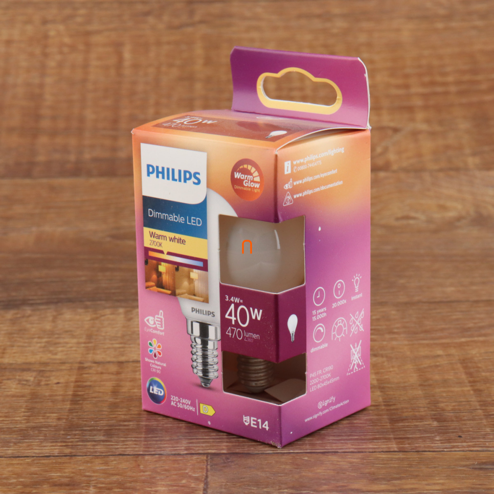 Philips E14 LED kisgömb 3,4W 470lm extra melegfehér - 40W izzó helyett (Calssic WarmGlow)