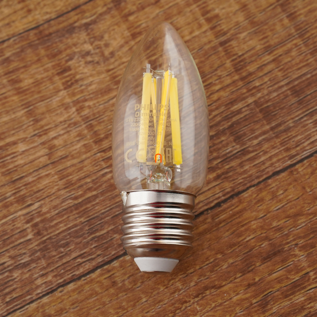 Philips E27 LED gyertya víztiszta 3,4W 470lm extra melegfehér - 40W izzó helyett (Calssic WarmGlow)