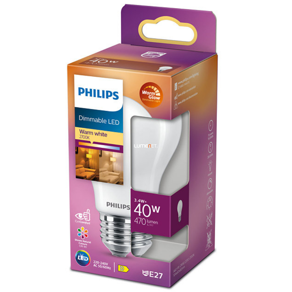 Philips E27 LED opál 3,4W 470lm extra melegfehér - 40W izzó helyett (Calssic WarmGlow)