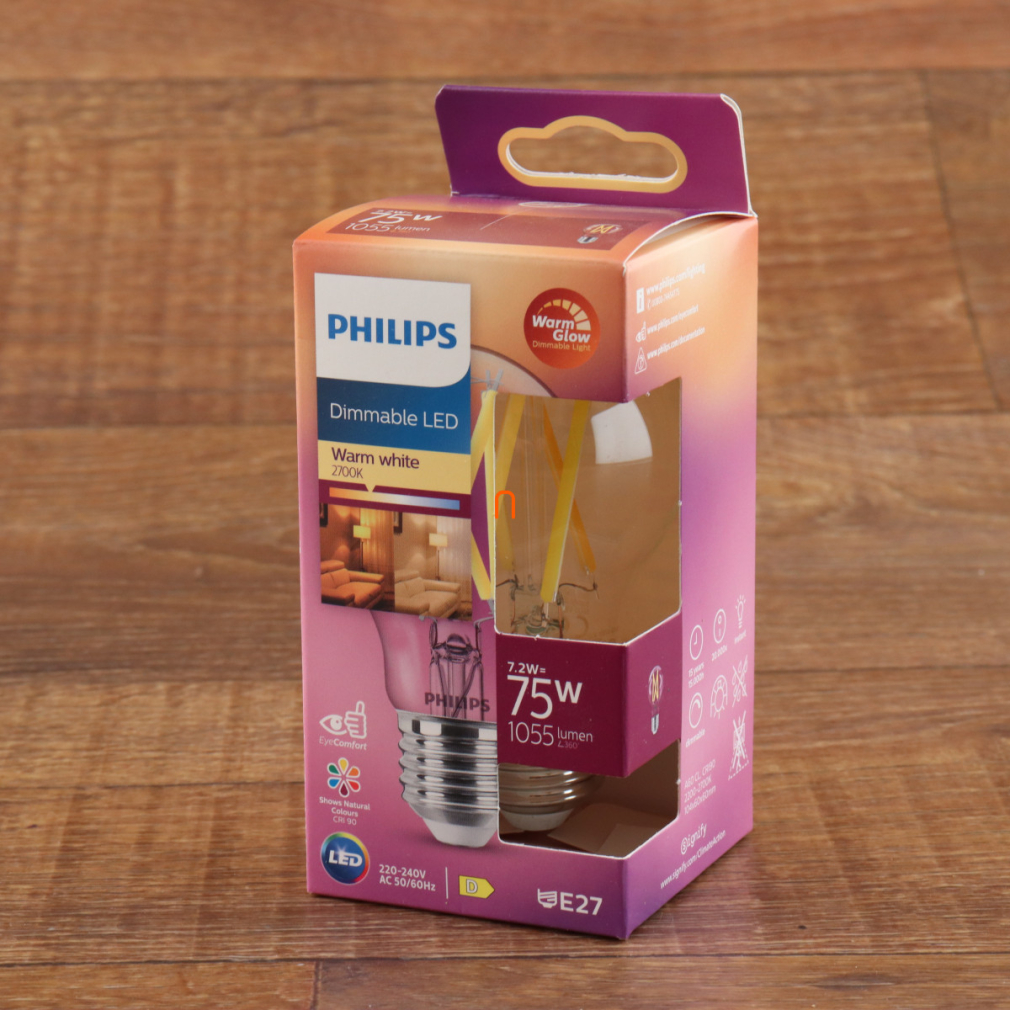 Philips E27 LED víztiszta 7,2W 1055lm extra melegfehér - 75W izzó helyett (Calssic WarmGlow)