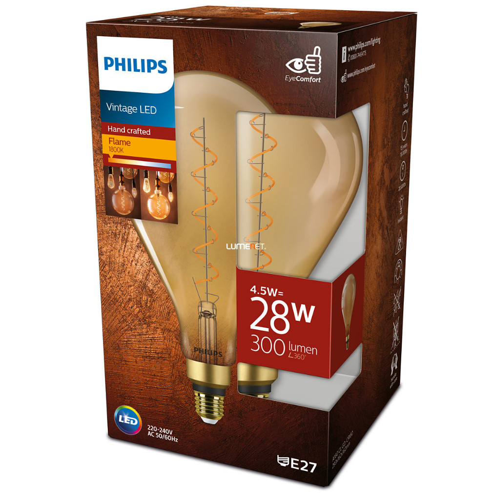 Philips E27 Vintage-Gold LED 4,5W 300lm 1800K melegfehér D160mm - 25W izzó helyett