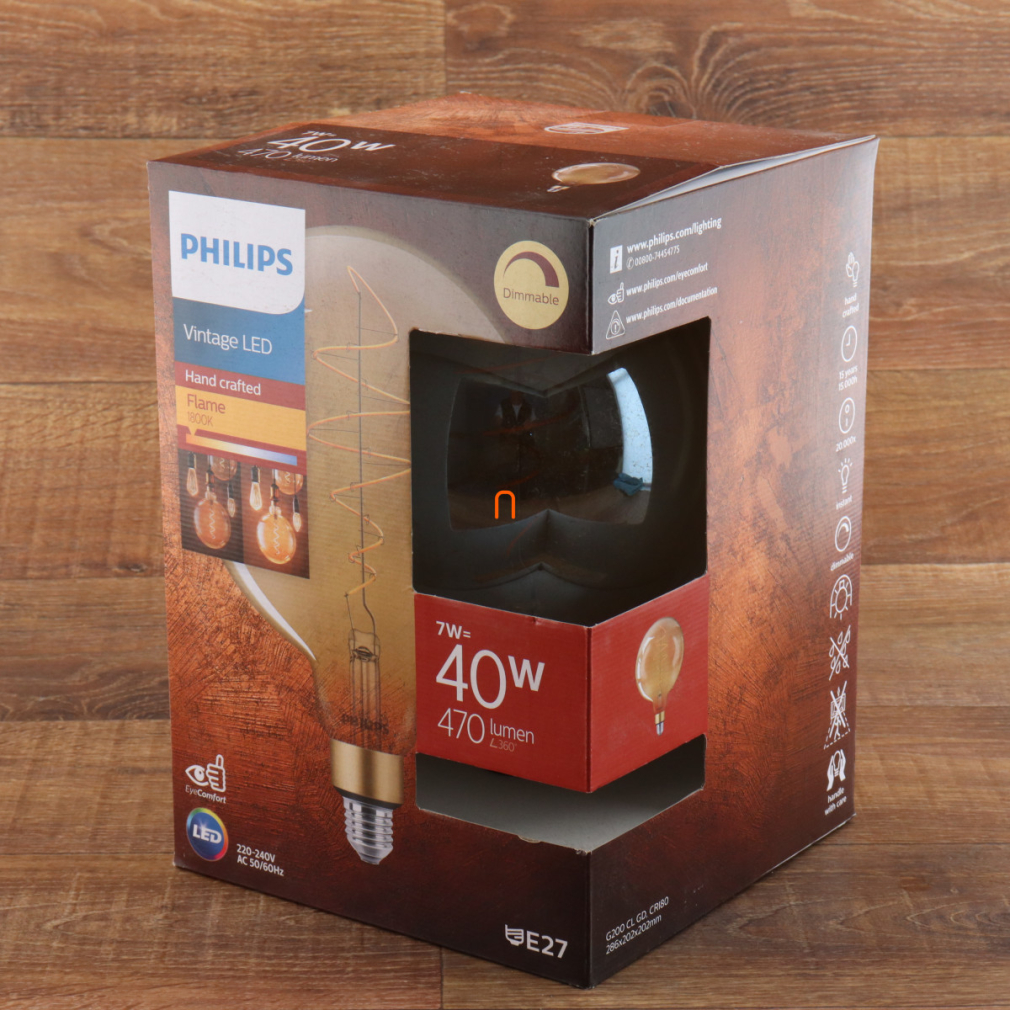 Philips E27 Vintage-Gold LED 7W 470lm 2000K melegfehér, szabályozható, D200mm - 40W izzó helyett