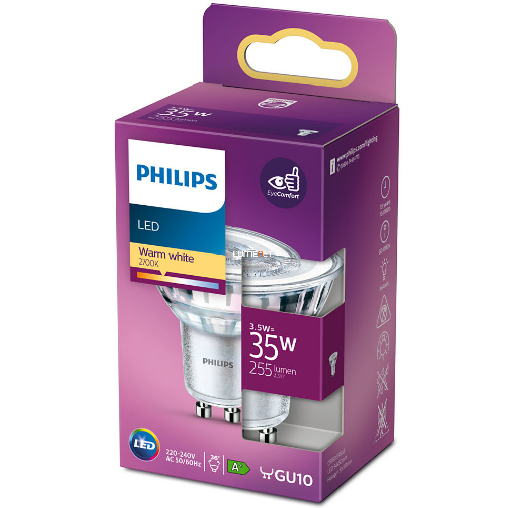 Philips GU10 LED 3,5W 255lm 2700K meleg fehér 36° - 35W izzó helyett