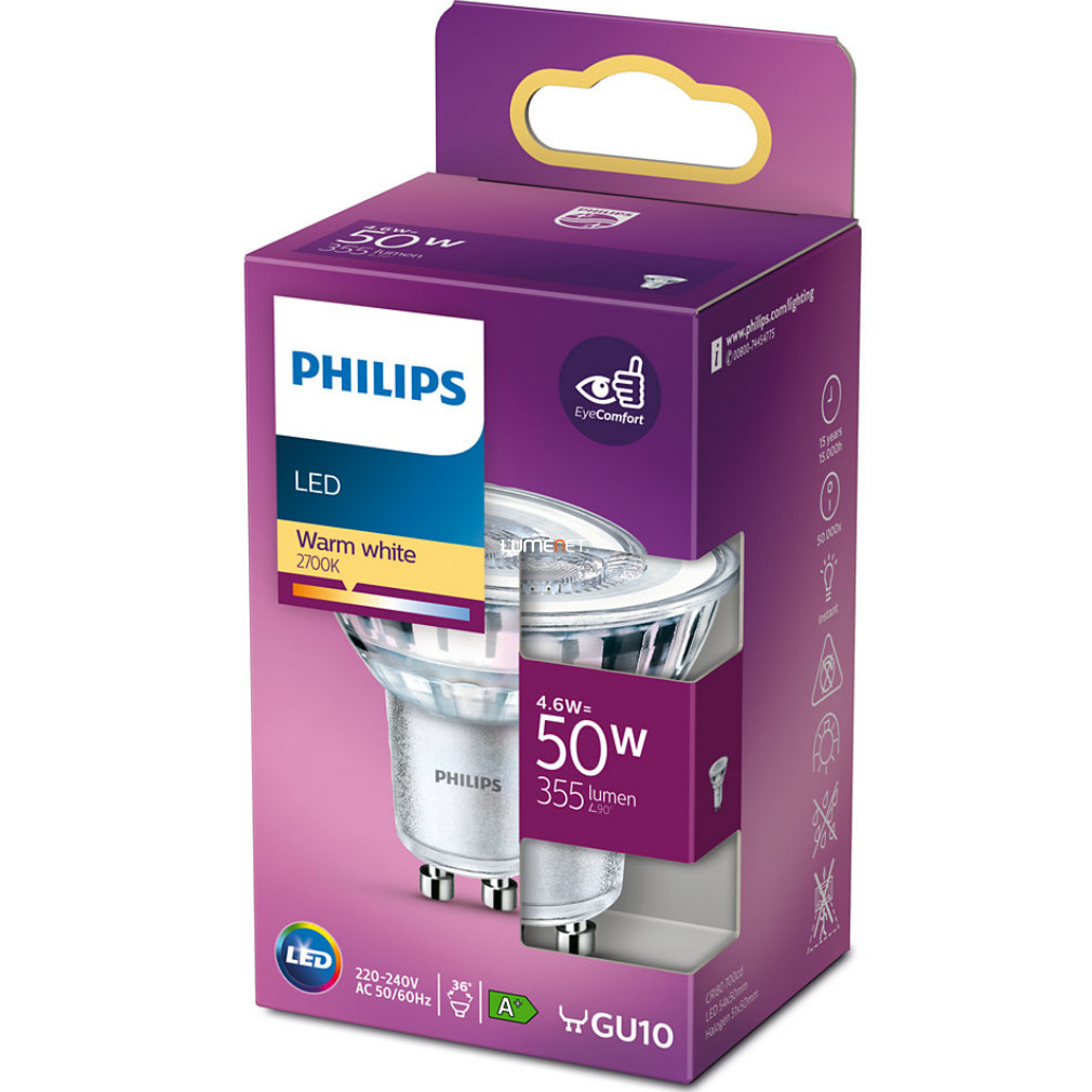 Philips GU10 LED 4,6W 355lm 2700K meleg fehér 36° - 50W izzó helyett