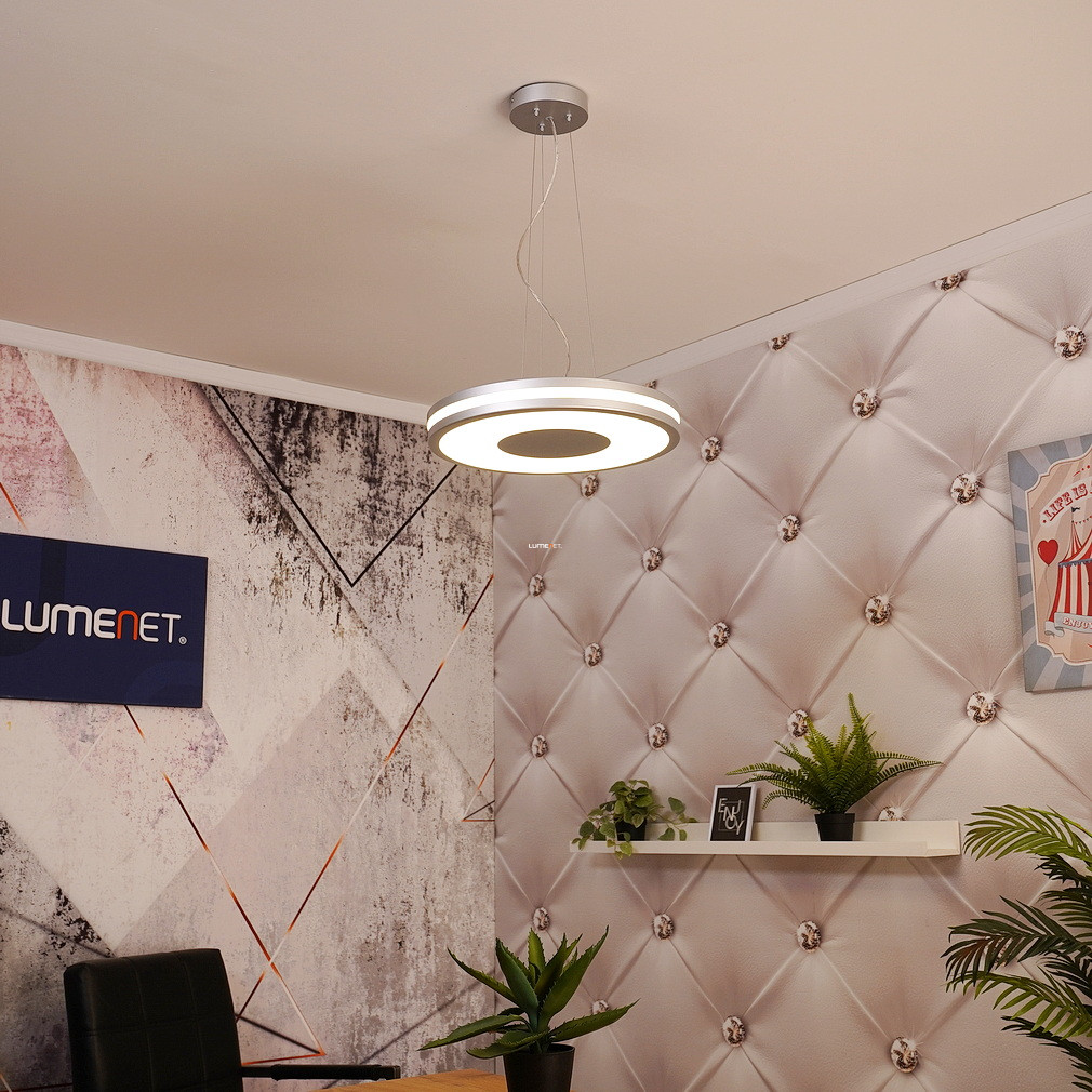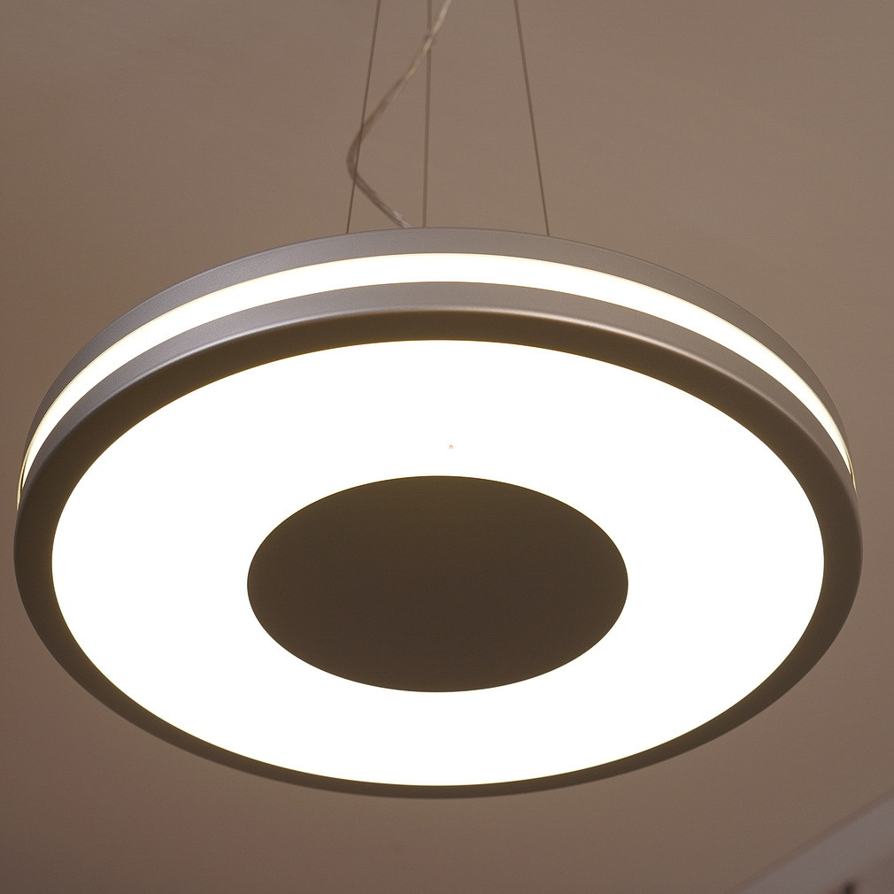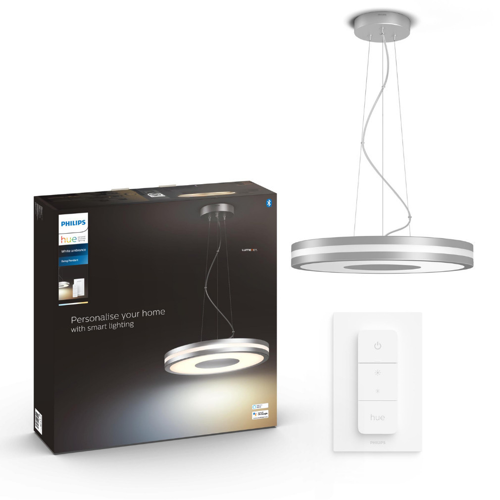 A Philips Hue Being White Ambiance LED függesztett lámpa ezüst színben, 25 W teljesítményű LED modullal van felszerelve, amely 2750 lumen fényáramot biztosít. A lámpatest színhőmérséklete 2200 és 6500 Kelvin között változtatható, így a fény színe a meleg fehértől a hideg fehérig szabályozható. A lámpa fényereje és színhőmérséklete egyszerűen állítható a mellékelt DIM Switch segítségével, illetve Bluetooth vagy Zigbee interfészen keresztül is vezérelhető. A fém anyagból készült lámpatest átmérője 421 mm, magassága 1580 mm, védettségi besorolása IP20. A termék átlagos élettartama 25 000 óra, és a fényforrást tartalmazza. A gyártó a Signify.