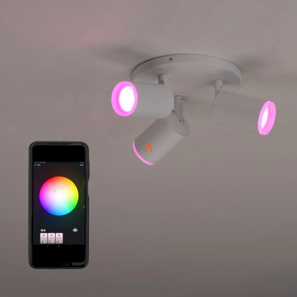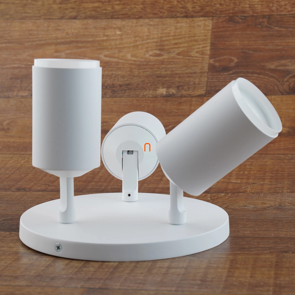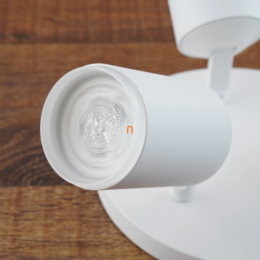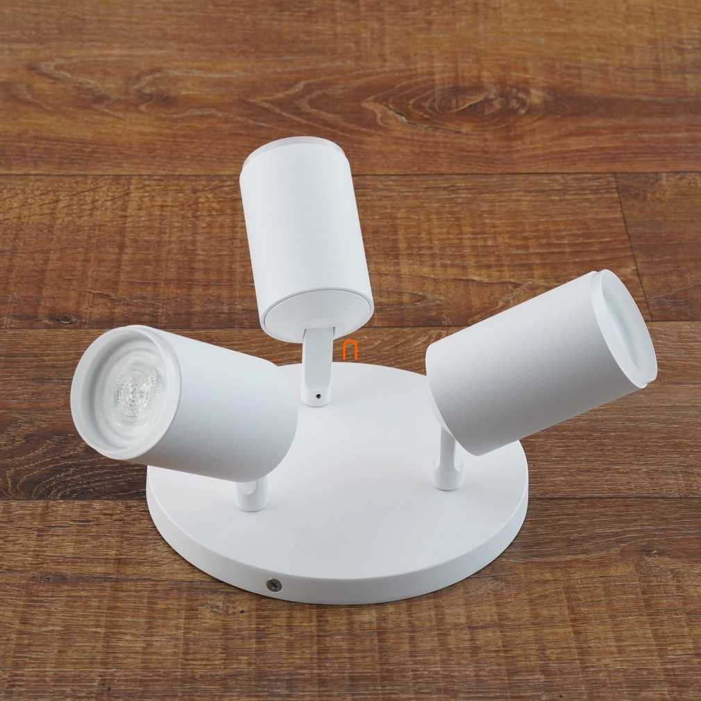 A Philips Hue spot lámpa, 3-es LED, fehér (Fugato) egy modern stílusú mennyezeti lámpatest, amely három GU10 foglalattal rendelkezik, és tartalmazza a cserélhető fényforrásokat. A lámpatest fém anyagból készült, fehér színben, IP20 védettségi szinttel, így beltéri használatra alkalmas. A világítás szabályozható, Bluetooth és Zigbee interfészen keresztül vezérelhető, lehetővé téve a fényerő és színhőmérséklet testreszabását. Az átlagos élettartam 15 000 óra. A termék méretei: 195 mm hosszúság, 195 mm szélesség és 153 mm magasság, tömege 1,44 kg. A csomagolás mérete: 29 cm x 29 cm x 20 cm. Gyártója a Signify, logisztikai kódja 915005761501.