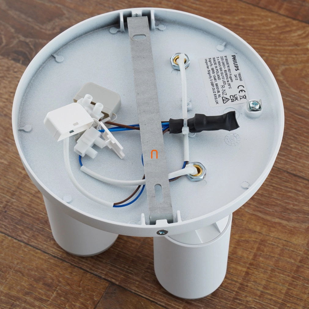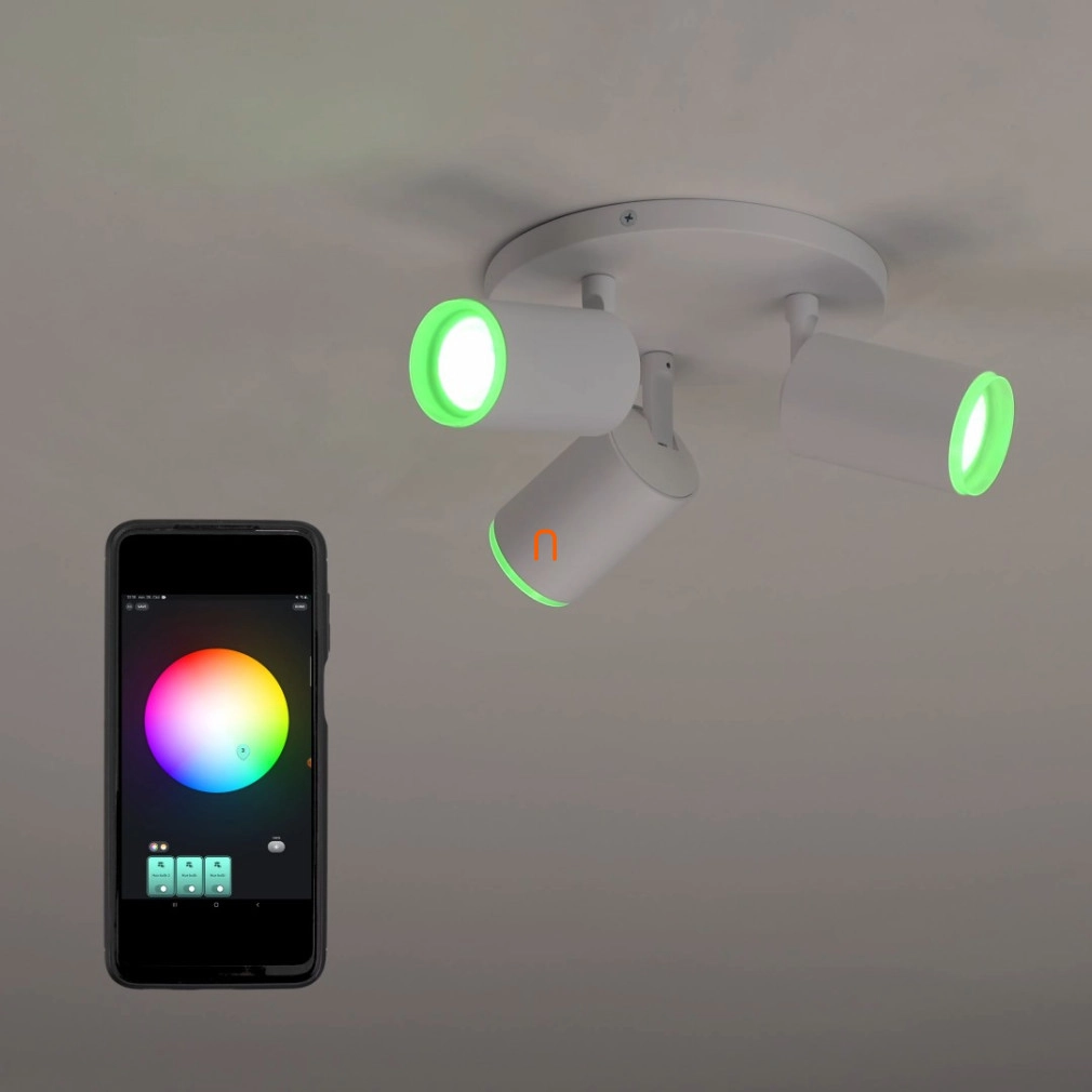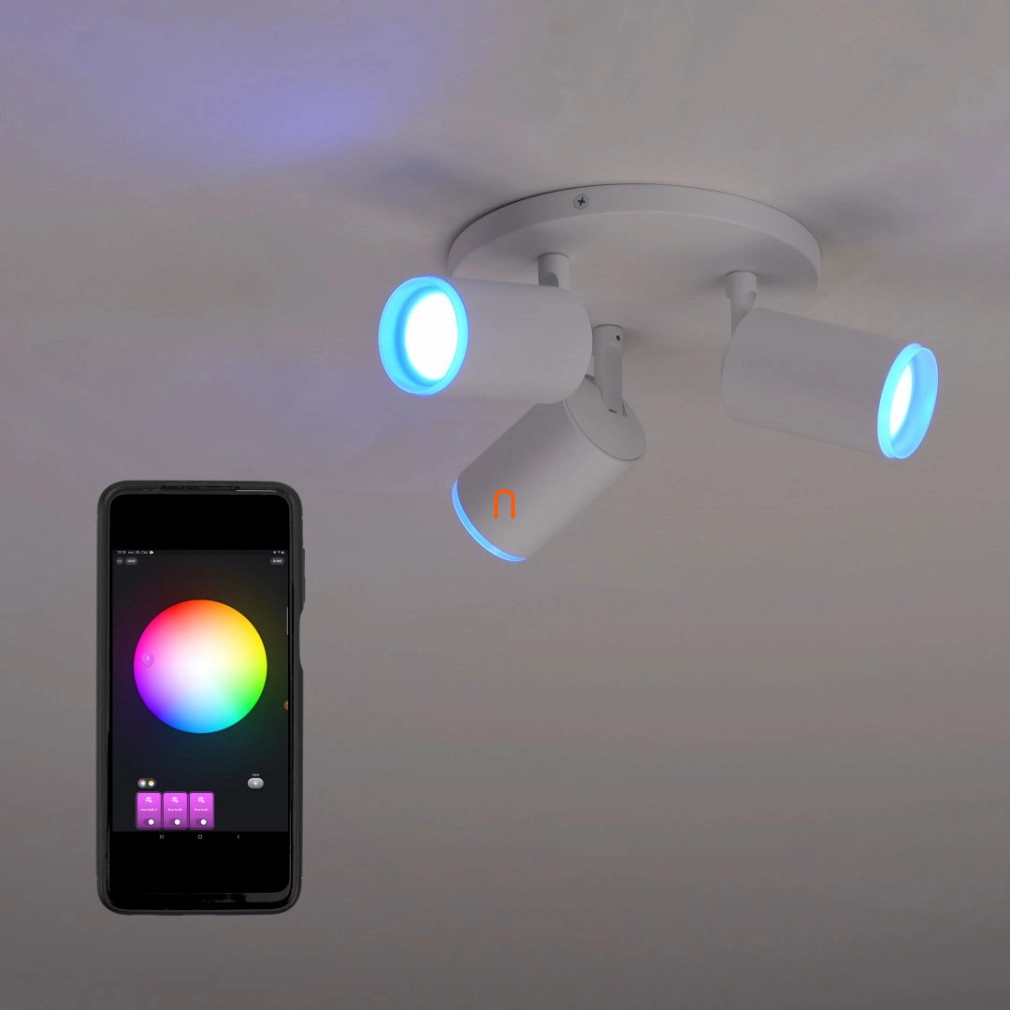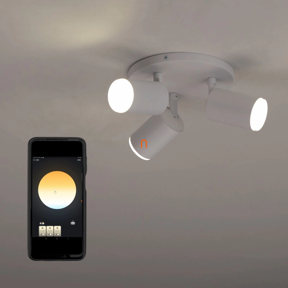 A Philips Hue spot lámpa, 3-es LED, fehér (Fugato) egy modern stílusú mennyezeti lámpatest, amely három GU10 foglalattal rendelkezik, és tartalmazza a cserélhető fényforrásokat. A lámpatest fém anyagból készült, fehér színben, IP20 védettségi szinttel, így beltéri használatra alkalmas. A világítás szabályozható, Bluetooth és Zigbee interfészen keresztül vezérelhető, lehetővé téve a fényerő és színhőmérséklet testreszabását. Az átlagos élettartam 15 000 óra. A termék méretei: 195 mm hosszúság, 195 mm szélesség és 153 mm magasság, tömege 1,44 kg. A csomagolás mérete: 29 cm x 29 cm x 20 cm. Gyártója a Signify, logisztikai kódja 915005761501.