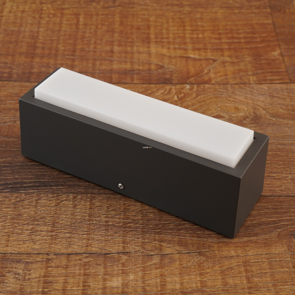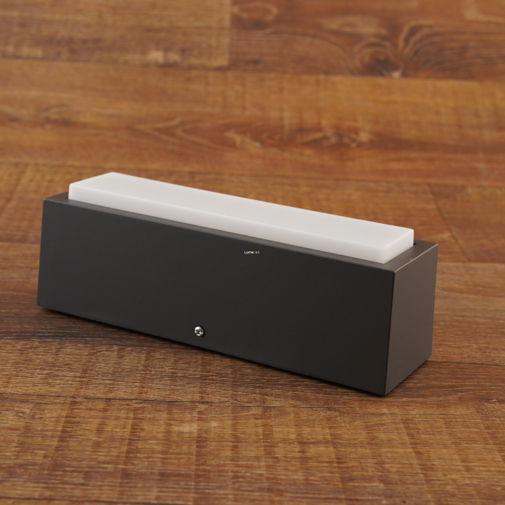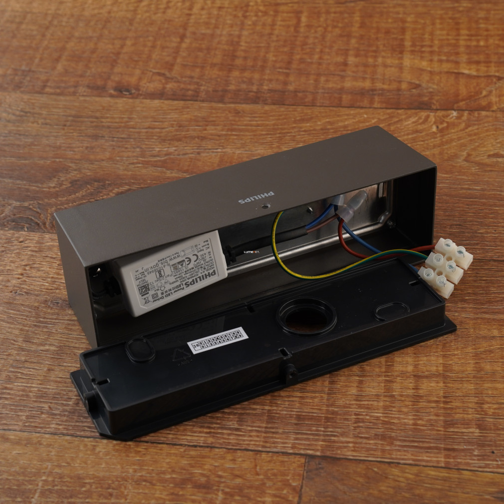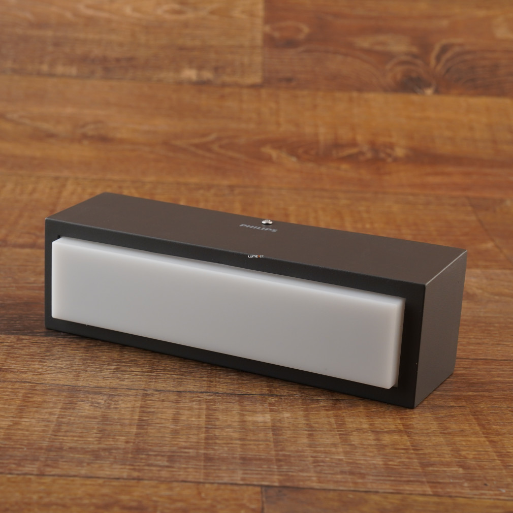 Az antracitszürke színű Philips Stratosphere LED kültéri fali lámpa tartós, fröccsöntött alumíniumból készült. A kialakítása révén szórt, meleg, fehér frontális fényt sugároz.