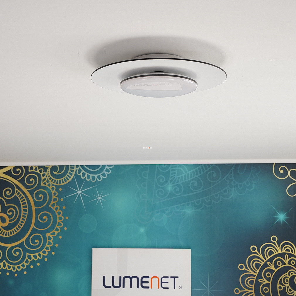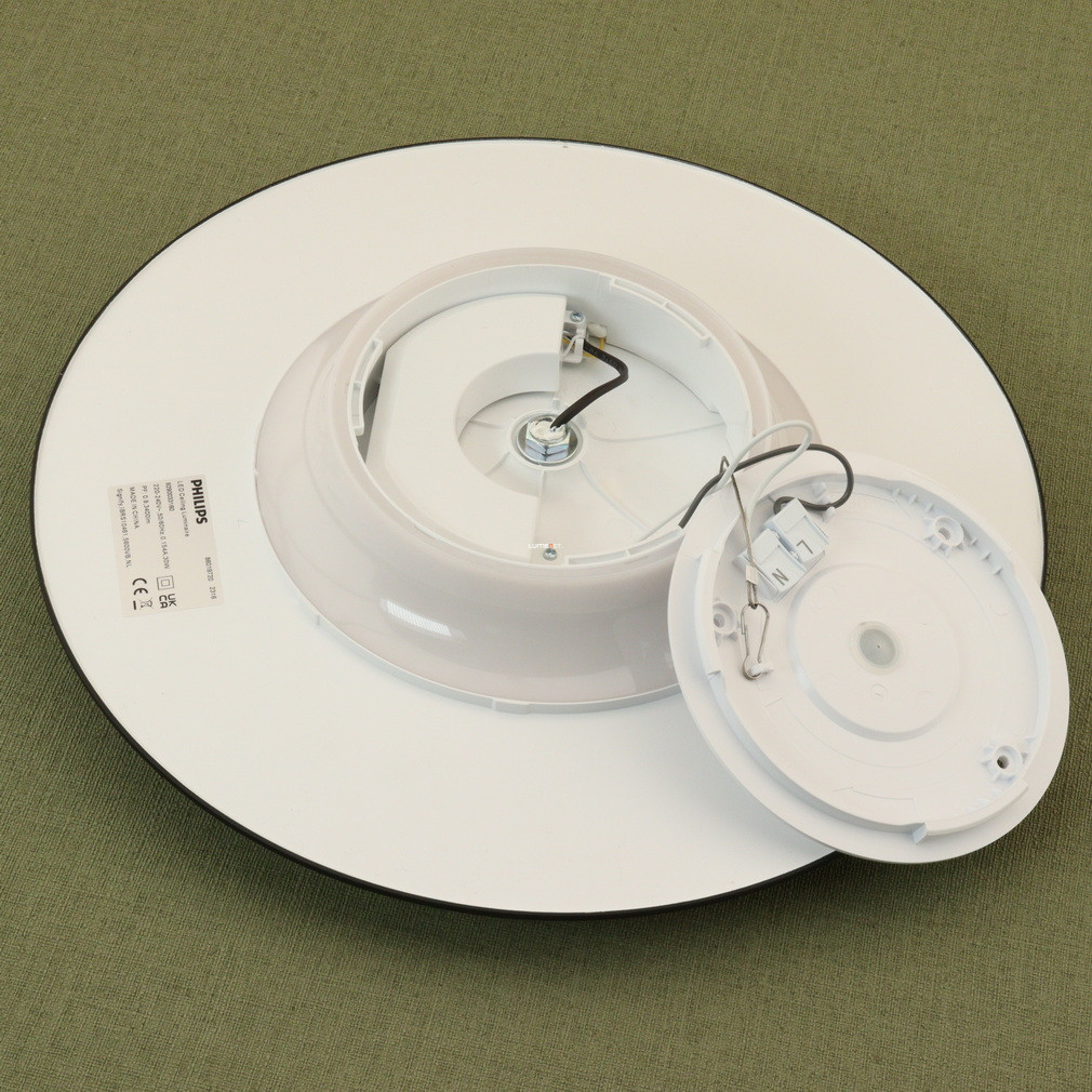A Philips mennyezeti LED lámpa Garnet modellje 30 wattos teljesítményével és 3400 lumen fényáramával hidegfehér, 4000 Kelvin színhőmérsékletű világítást biztosít. A lámpatest háromzónás világítási kialakítással rendelkezik, amely egyenletes fényeloszlást tesz lehetővé. A beépített LED modul nem szabályozható, színvisszaadási indexe (CRI) 80, ami természetes fényhatást eredményez. A lámpa névleges feszültsége 220-240 V, IP20 védettségi besorolással rendelkezik, így beltéri használatra alkalmas. Fekete színű, műanyag burkolata modern megjelenést kölcsönöz, átmérője 400 mm, magassága 89 mm. Átlagos élettartama 20 000 óra, így hosszú távon biztosít megbízható világítást.