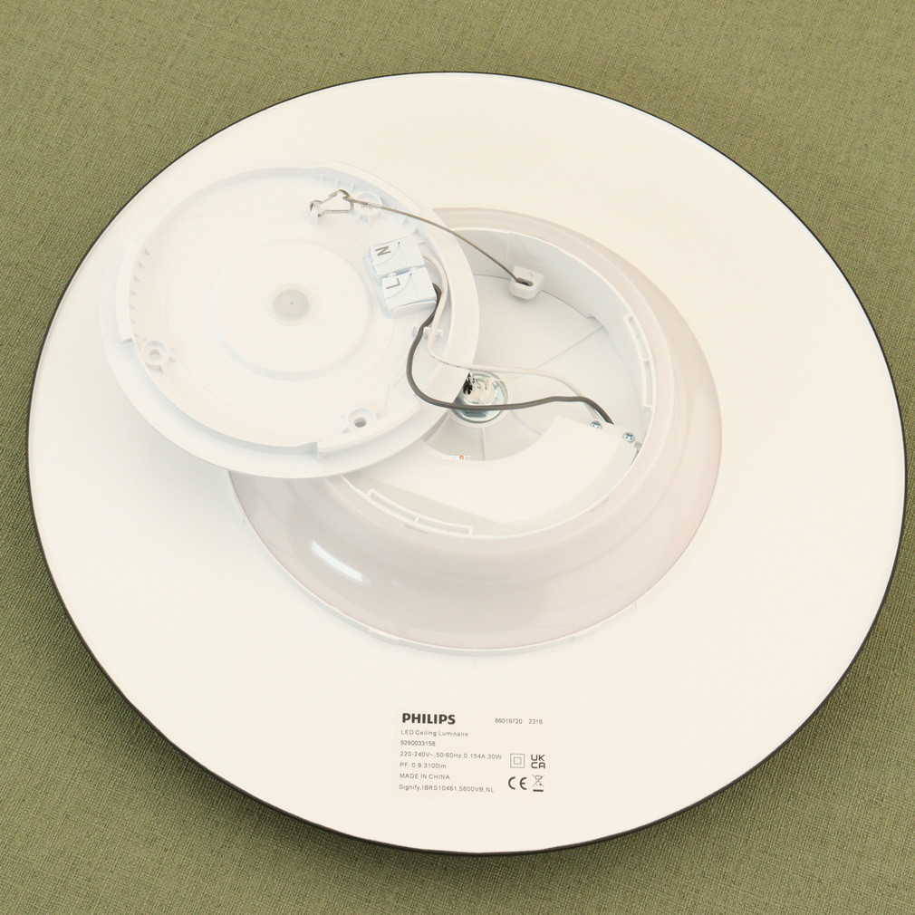 A Philips Garnet mennyezeti LED lámpa egy modern, fekete színű, háromzónás világítási megoldás, amely 30 wattos beépített LED modullal működik. A lámpatest 3100 lumen fényáramot biztosít, 2700 kelvines melegfehér színhőmérséklettel, így kellemes, otthonos hangulatot teremt. A fényforrás nem szabályozható, a 80-as színvisszaadási index pedig biztosítja a természetes színek megjelenítését. A lámpa átmérője 400 mm, magassága 89 mm, anyaga tartós műanyag. A termék IP20 védettségi szinttel rendelkezik, így beltéri használatra alkalmas. Átlagos élettartama 20 000 óra, névleges feszültsége 220-240 V. A Garnet mennyezeti lámpa beépített LED fényforrást tartalmaz, csomagolási méretei 44x44x12 cm, tömege 1,066 kg. Gyártója a Signify.