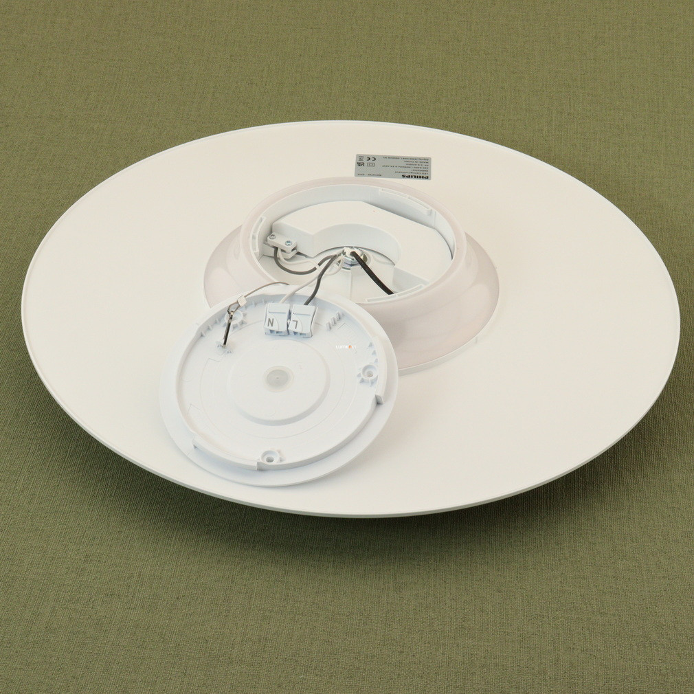 A Philips Garnet mennyezeti LED lámpa 40 W teljesítményű, beépített LED modullal rendelkezik, amely 4200 lumen fényáramot biztosít. A melegfehér, 2700 K színhőmérséklet kellemes, otthonos légkört teremt. A lámpatest háromzónás világítási kivitelben készült, a fényforrás nem szabályozható. A termék átmérője 500 mm, magassága 99 mm, fehér színű műanyagból készült, színvisszaadási indexe (CRI) 80. Az IP20 védettségi szint beltéri használatra teszi alkalmassá, névleges feszültsége 220-240 V. A lámpa átlagos élettartama 20 000 óra. A csomagolás mérete: 54 cm hosszú, 54 cm magas és 13 cm széles, a termék tömege 1,302 kg.