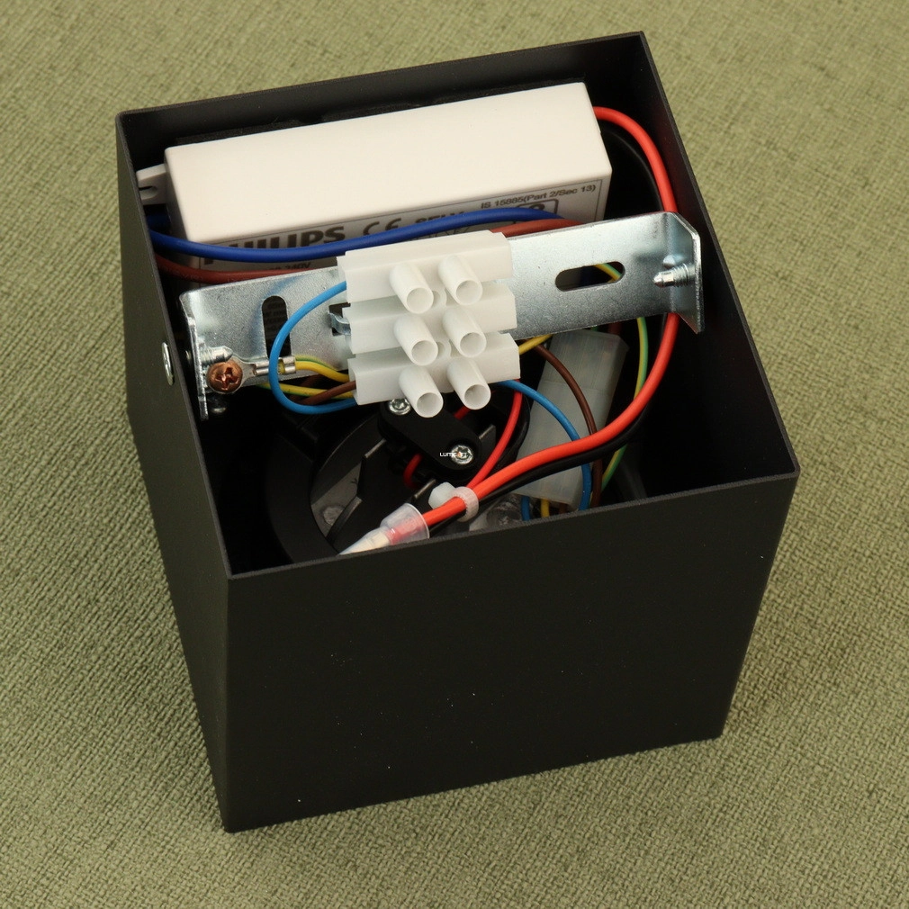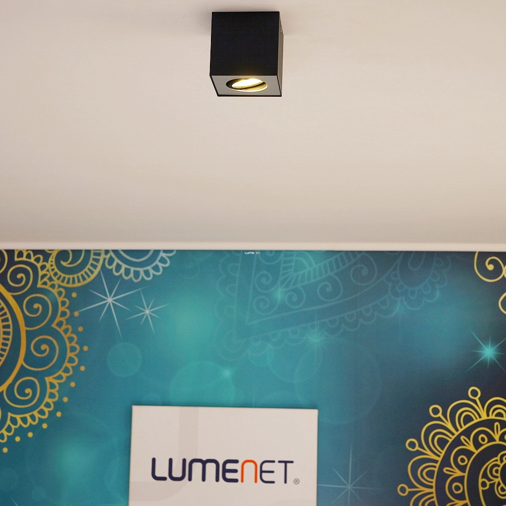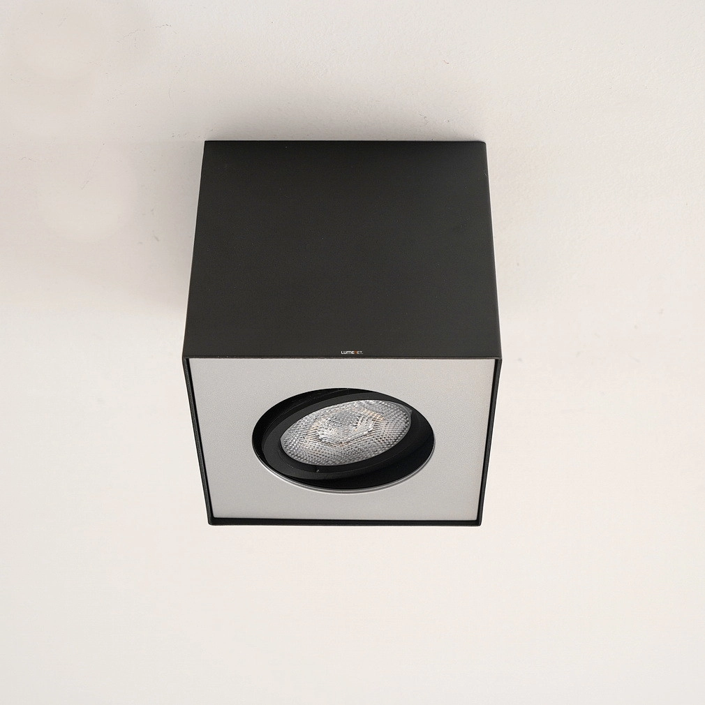 A Philips mennyezeti LED spot (myLiving Box) modern stílusú, mennyezetre szerelhető világítótest, amely 4,5 W teljesítményű, beépített LED modullal rendelkezik. A lámpatest 500 lumen fényáramú melegfehér fényt biztosít, amely szabályozható, így a fényerő igény szerint állítható. A termék fémházzal készül, fekete és szürke színkombinációban, IP20 védettséggel ellátva, amely beltéri használatra teszi alkalmassá. Kompakt kialakítása révén 103 mm hosszúságú és szélességű, valamint 100 mm magasságú, tömege 0,76 kg. A LED fényforrás átlagos élettartama 30 000 óra, így hosszú távú, energiatakarékos megoldást kínál lakásvilágítási feladatokra. A csomagolás mérete 15x15x15 cm, a gyártó a Signify.