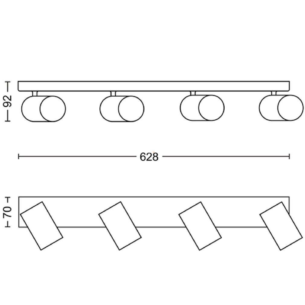 A Philips négy karos spot lámpa (Kosipo) mennyezetre szerelhető kivitelben készült, fehér színű, modern megjelenéssel és masszív fémházzal. A lámpatest négy darab GU10 foglalattal rendelkezik, melyek mindegyike cserélhető fényforrást fogad, így a fényáram, fényszín és teljesítmény igény szerint választható. A lámpa nem szabályozható, névleges feszültsége 220-240 V, védettségi szintje IP20, ami beltéri használatra teszi alkalmassá. A termék méretei: hosszúsága 92 mm, szélessége 628 mm, magassága 70 mm, tömege 1,465 kg. A csomagolás mérete 11x11x67 cm. A lámpatest nem tartalmaz fényforrást, így a kívánt GU10 izzók külön választhatók hozzá. A termék logisztikai kódja 929003204601, gyártója a Signify.