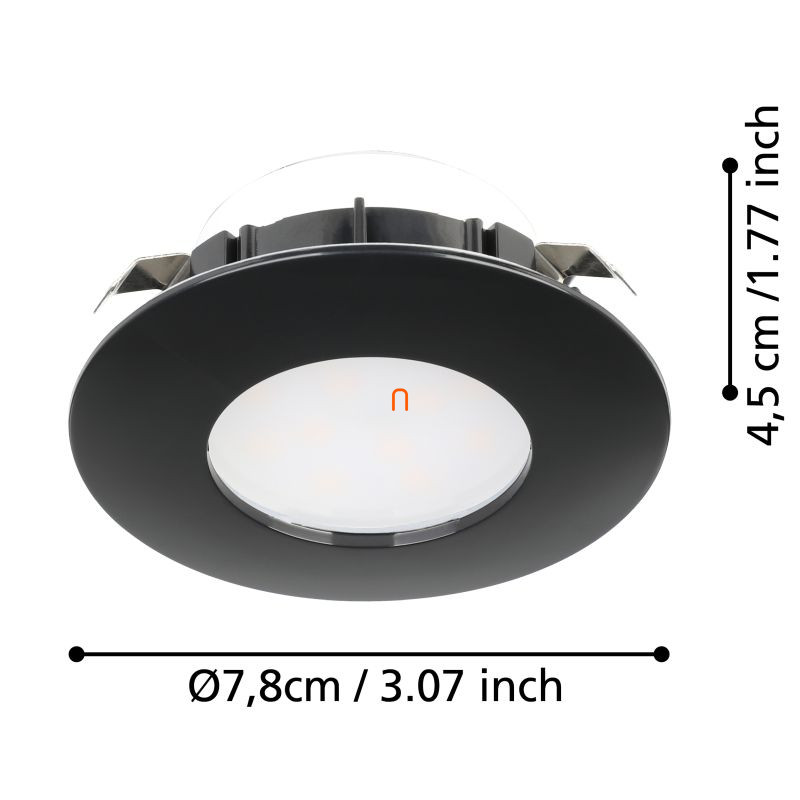 Pineda LED beépíthető spot D78mm 3000K 460lm fekete EGLO 900743