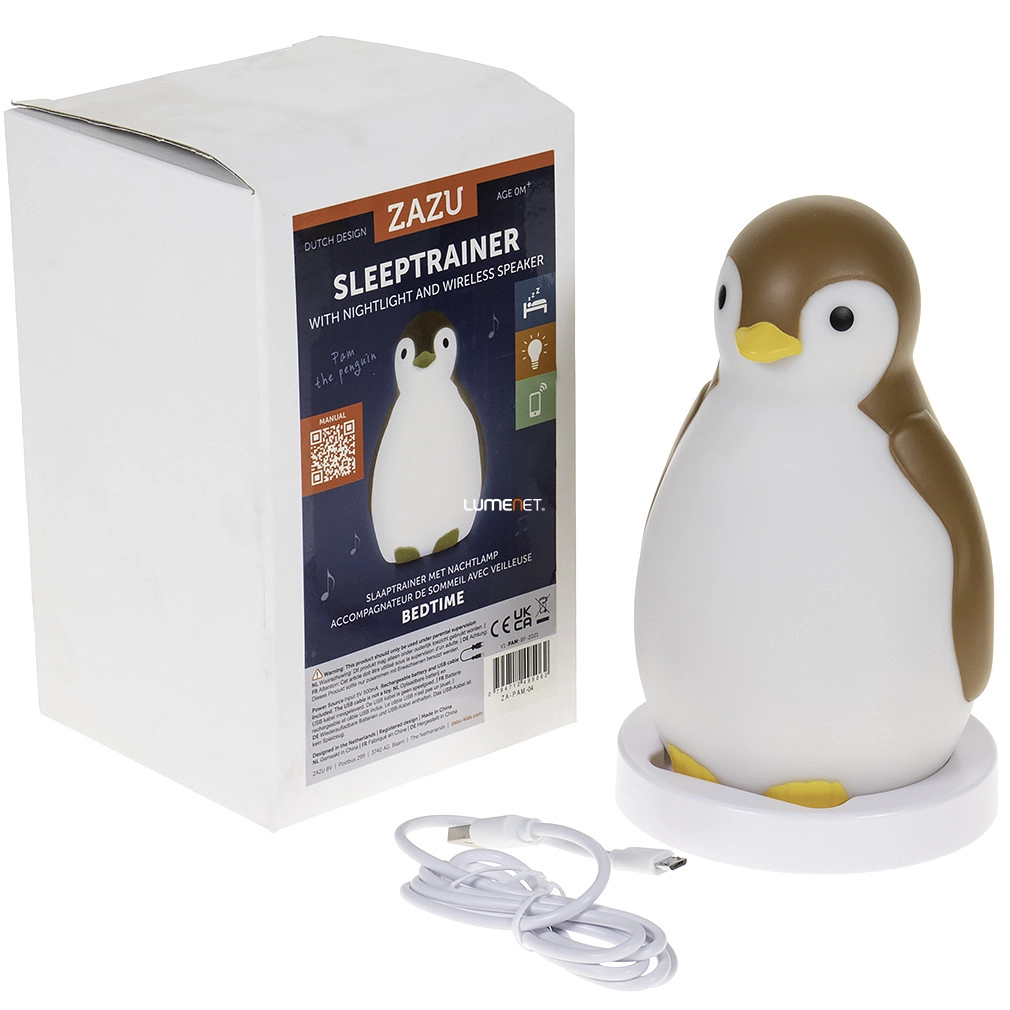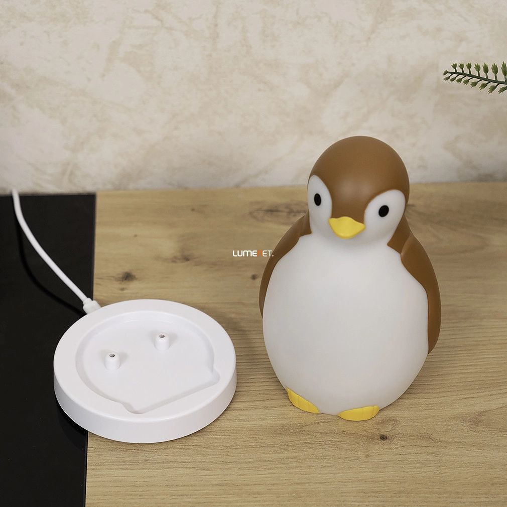 A Pingvines éjjeli fény alvás trénerrel barna színben, Pam Zazu ZA-PAM-04 modell, ideális megoldás gyerekszobák világítására. A 0,44 kg tömegű, modern gyerek lámpa fehér és barna színű, kiváló minőségű műanyagból készült. Beépített LED modullal rendelkezik, amely energiatakarékos és hosszú élettartamú fényforrást biztosít. Az eszköz IP20 védettségi szinttel van ellátva, így beltéri használatra ajánlott. Működtetése elemmel vagy USB kábellel (tartozék) tölthető, így rugalmasan alkalmazható különböző környezetekben. Az éjjeli fény átmérője 110 mm, magassága 180 mm, logisztikai kódja ZA-PAM-04. A csomagolás méretei: 16 cm szélesség, 12 cm hosszúság, 19 cm magasság. A gyártó a Zazu, amely megbízható minőséget képvisel a gyerekszoba világítási megoldások terén.