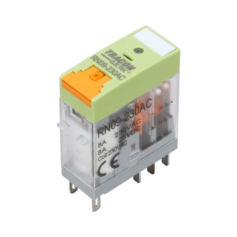 Print relé tesztgombbal és állapotjelzéssel 2×CO 8A, 24VAC RN09-24AC Tracon