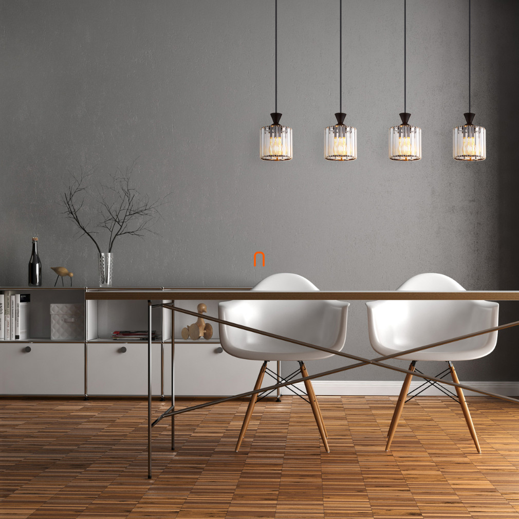 A Jordana Globo 15742-4 prizmás függesztett lámpa egy modern, elegáns világítási megoldás, amely négy E27-es foglalattal rendelkezik, így a fényforrások szabadon cserélhetők és testre szabhatók. A lámpatest matt fekete színű fém és akril kristály kombinációjából készült, ami egyedi megjelenést és tartósságot biztosít. A 230 V névleges feszültséggel működő lámpa IP20 védettségi besorolással rendelkezik, beltéri használatra alkalmas. A termék méretei 860 mm hosszúság, 130 mm szélesség és 1200 mm magasság, tömege 3,25 kg. A csomagolás méretei: 81 cm hosszú, 18 cm széles, 14 cm magas. A lámpatest nem tartalmaz fényforrást, így a megfelelő izzók külön választhatók hozzá. A Globo által gyártott modell ideális választás lehet nappalik, étkezők vagy más lakóterek stílusos megvilágításához.
