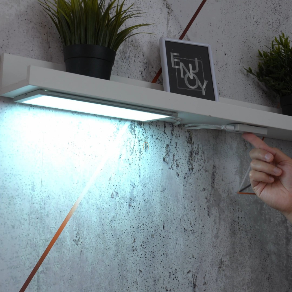 kapcsolóval szabályozható fényerő, kézlegyintéssel kapcsolható