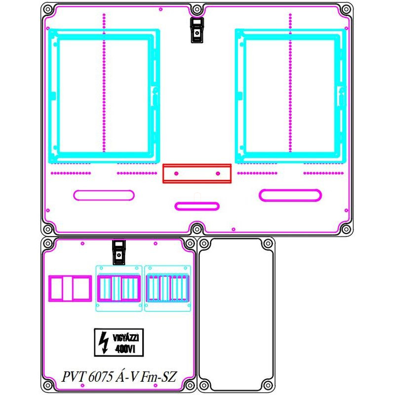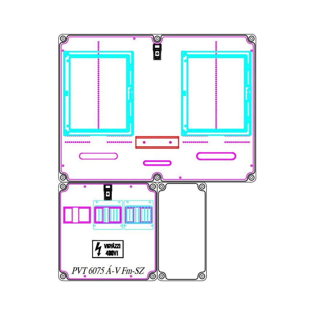 PVT 6075 Á-V Fm-SZ fogyasztásmérő szekrény, 1 vagy 3 fázisú általános és vezérelt mérők számára, szabadvezetékes,földelősínes modullal