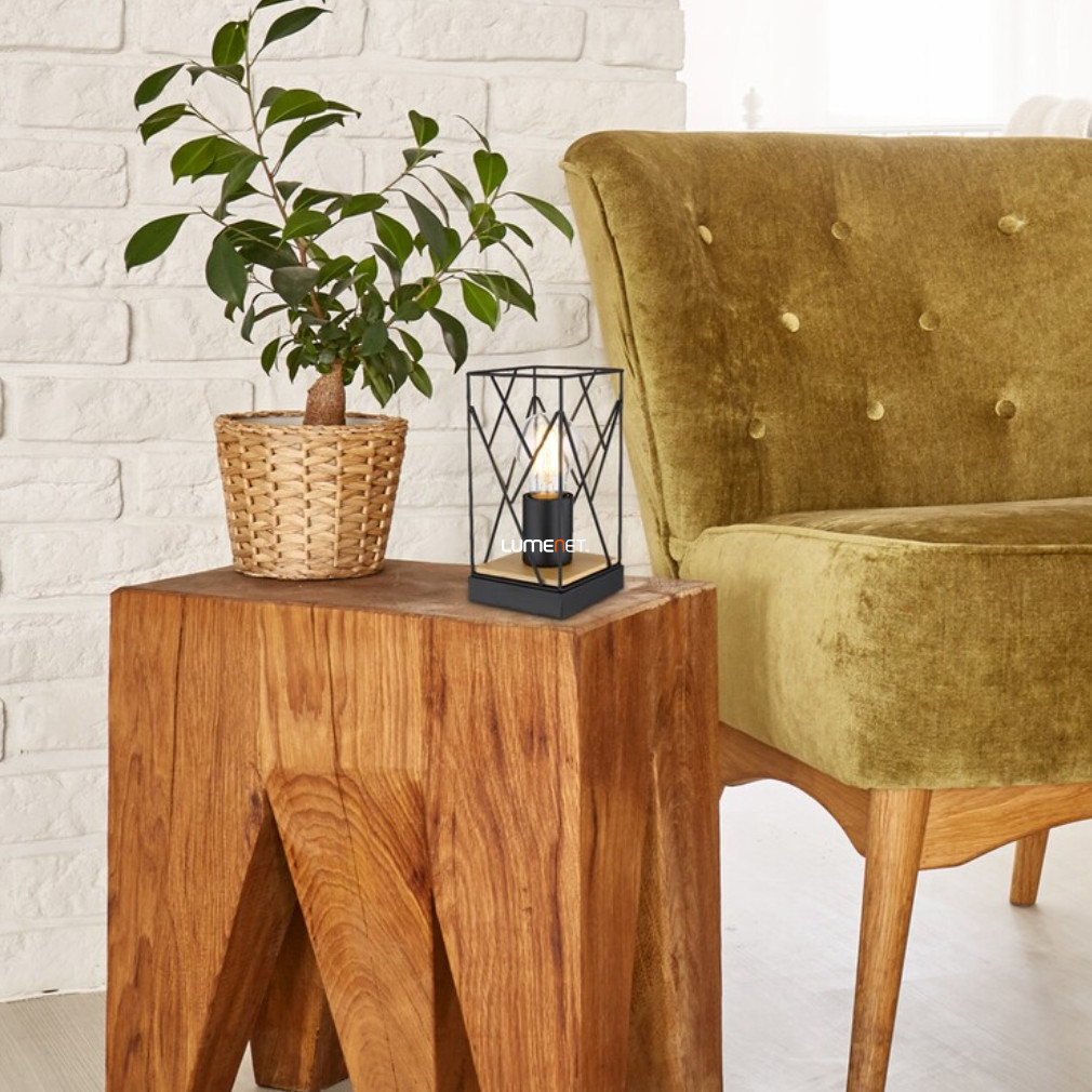 A Boire Rábalux 74006 rácsos asztali lámpa modern, letisztult formavilággal és 21 cm-es magassággal készül. A lámpatest fekete színű fém és fa kombinációjából áll, amely időtálló megjelenést biztosít. Egy darab E27 foglalattal rendelkezik, amelybe tetszőleges, cserélhető fényforrás helyezhető, így a fényáram, fényszín, teljesítmény és színhőmérséklet igény szerint választható. A lámpa fényforrást nem tartalmaz, maximális védettsége IP20, így beltéri használatra alkalmas. A termék tömege 0,74 kg, méretei 100 mm hosszúság, 100 mm szélesség és 210 mm magasság. A csomagolás méretei: 12 cm szélesség, 11 cm hosszúság, 22 cm magasság, a kábel hossza 1,5 méter. A lámpa gyártója a Rábalux.