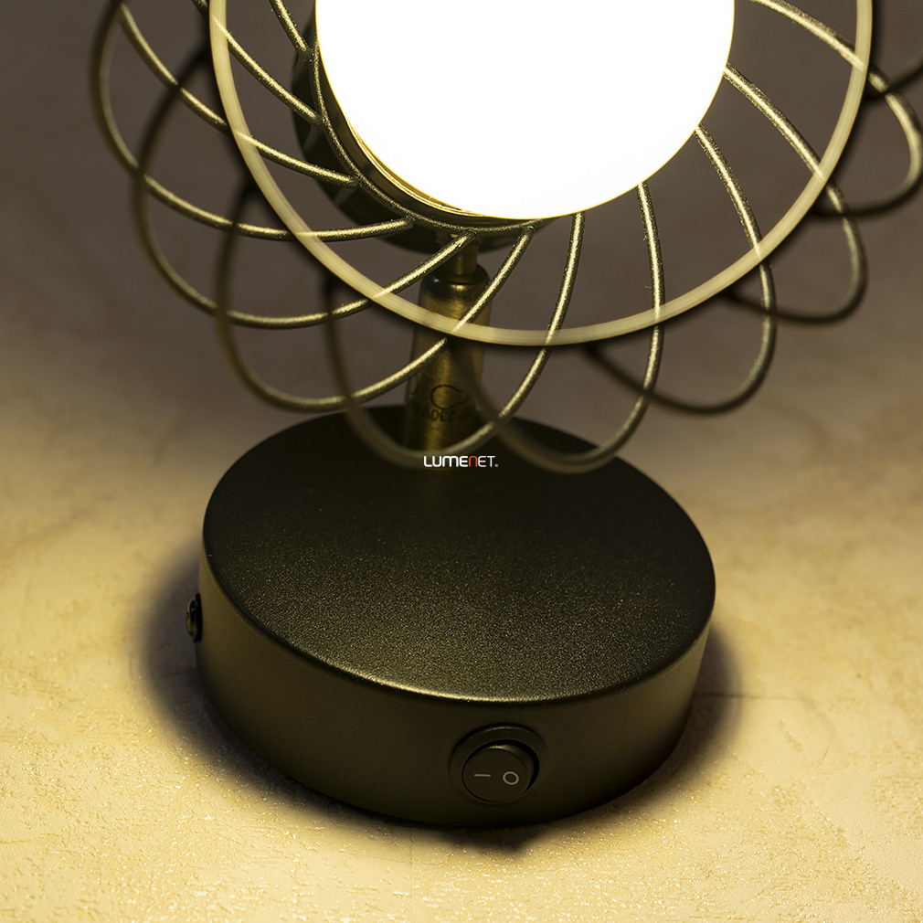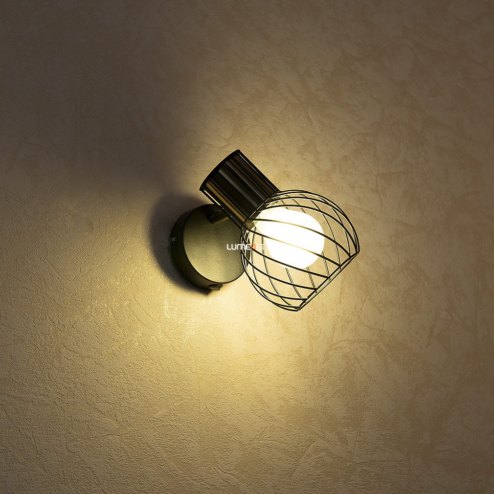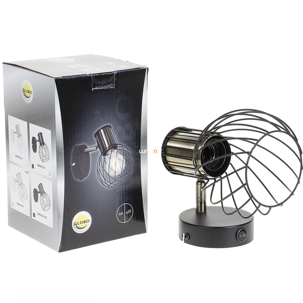 A Rácsos spot lámpa, fekete - Argusto Globo 54013-1 egy modern kialakítású fali lámpa, amelyet a Globo gyárt. A lámpatest fém anyagból készült, fekete és arany színkombinációval rendelkezik, így esztétikailag illeszkedik különböző lakberendezési stílusokhoz. A termék E27-es foglalattal van ellátva, egy darab cserélhető fényforrással működtethető, amely nem tartozéka a csomagnak. A lámpa beépített kapcsolóval rendelkezik, azonban nem szabályozható. Az IP20 védettségi szint beltéri használatra teszi alkalmassá. A lámpa méretei: 160 mm hosszúság, 120 mm szélesség és 165 mm magasság, tömege 0,41 kg. A csomagolás mérete 12x12x20 cm. A termék logisztikai kódja 54013-1.