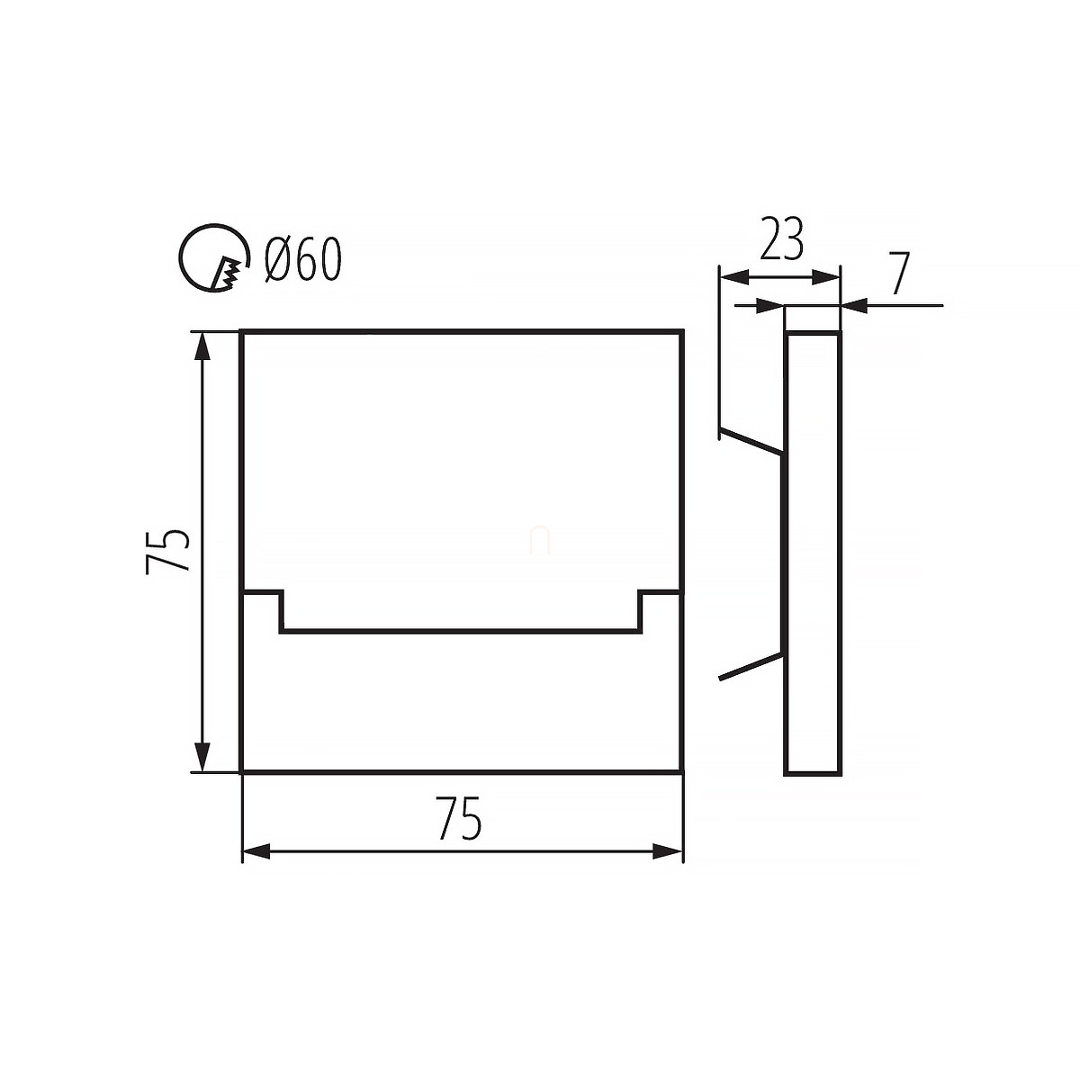A Kanlux Sabik 29853 LED süllyesztett lépcsővilágító egy 0,8 watt teljesítményű, 13 lumen fényáramú, melegfehér (3000K) fényű világítótest, amely kifejezetten beltéri használatra tervezett, IP20 védettséggel rendelkezik. A lámpatest fekete színű, acél és műanyag anyagból készült, kompakt méretekkel: 75 mm hosszúság, 23 mm szélesség és 75 mm magasság, valamint 60 mm kivágási méret szükséges a beépítéshez. A termék LED modullal szerelt, 12 V névleges feszültséggel működik, tápegységet azonban nem tartalmaz. A lámpatest kis fogyasztása és diszkrét megjelenése révén ideális választás lépcsők, folyosók vagy falak dekoratív megvilágításához, ahol a melegfehér fény kellemes légkört teremt.