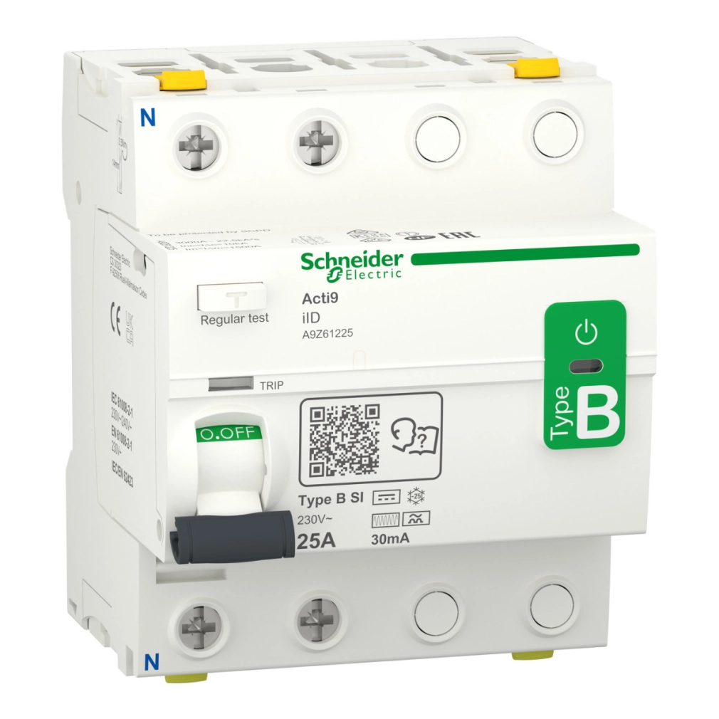 Schneider Electric Acti9 iID - A9Z61225 - áram - védőkapcsoló, B - SI osztály, 2P, 25A, 30mA műszaki adatok