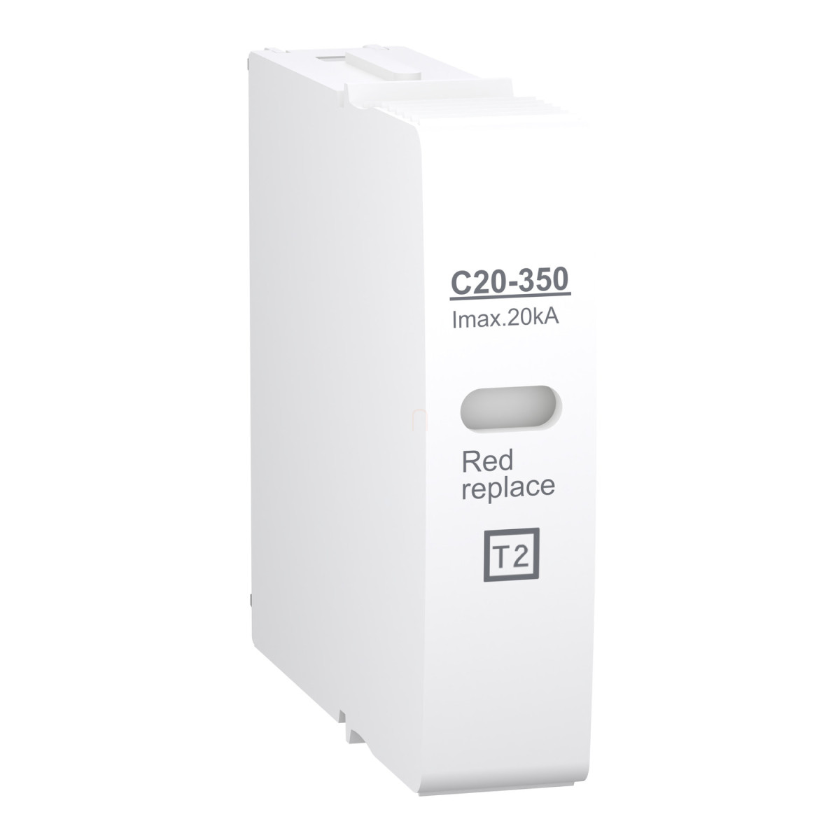 A C20-350 cserebetét fő feladata, hogy megvédje az elektromos rendszert a hálózaton érkező túlfeszültség-impulzusoktól, különösen a villámcsapások közvetett hatásaitól. A termék MOV (fém-oxid varisztor) technológián alapul, amely rendkívül gyors, kevesebb mint 25 nanoszekundumos válaszidőt biztosít, így azonnal reagál a veszélyes túlfeszültségekre. A Schneider Electric C20-350 modulnak 5 kA névleges levezetőárama és 20 kA maximális levezetőképessége van, ami megfelelő védelmet nyújt a legtöbb alkalmazásban.