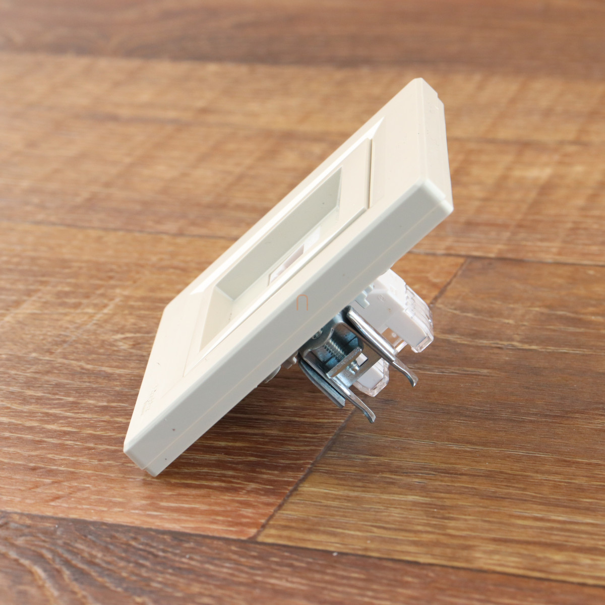 A termék műszaki kialakítása figyelemre méltó. Az aljzat 83 mm x 83 mm méretű előlappal rendelkezik, teljes mélysége 48 mm, míg kiemelkedő része mindössze 9 mm. A süllyesztett szerelési módnak köszönhetően esztétikus megjelenést biztosít. A rögzítés rugalmas karokkal történik, amelyek 51-80 mm közötti dobozmérethez illeszkednek. A fényes felületkezelésű ABS (akrilnitril-butadién-sztirol) anyagból készült központi lap és keretborítás tartós és esztétikus megjelenést biztosít. A vezető anyaga réz, amely kiváló elektromos vezetőképességet garantál.