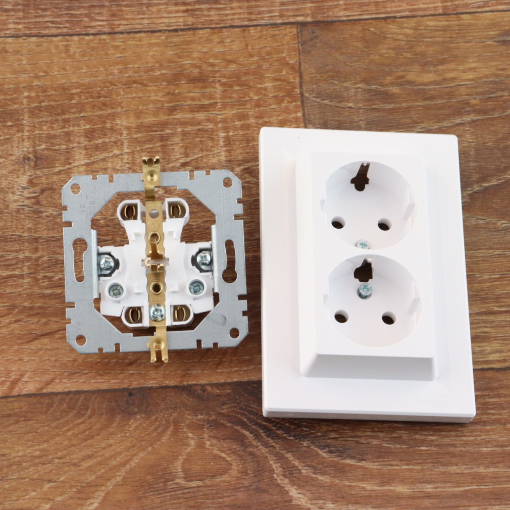 ASFORA 2x2P+F csatlakozóaljzat, csavaros, kerettel, fehér EPH9900121 Schneider ASFORA 2x2p+F csatlakozóaljzat, csavaros, kerettel, fehér. termékcsalád: Asfora - termék vagy komponens típusa: csatlakozókimenet - dugaljak standard leírása: föld csatlakozás - a csomagolás típusa: flow-pack. Előnyök : Szakítson a hagyományokkal és a megszokásokkal, használjon színes szerelvényeket a különböző világítási és komfortfunkciókhoz is., Redőnyvezérlés, Jelzőfényes kapcsoló, Fényerőszabályzó. A csatlakozók széles választékának köszönhetően nem marad le semmiről és igazán önfeledten élvezheti szabadidejét, hiszen számos funkció szolgálja az Ön kényelmét:, TV/R/SAT aljzat, RJ45 adatcsatlakozó, Hangszórócsatlakozó. Amellett, hogy az Asfora termékek elegáns vonalvezetésükkel stílust adnak otthonának, megfelelnek az aktuális szabványoknak, masszív és időtálló anyagból készülnek., Csapfedeles csatlakozóaljzat, IP44-es csatlakozóaljzat.. Alkalmazások: Otthoni, irodai és közösségi épületekben..