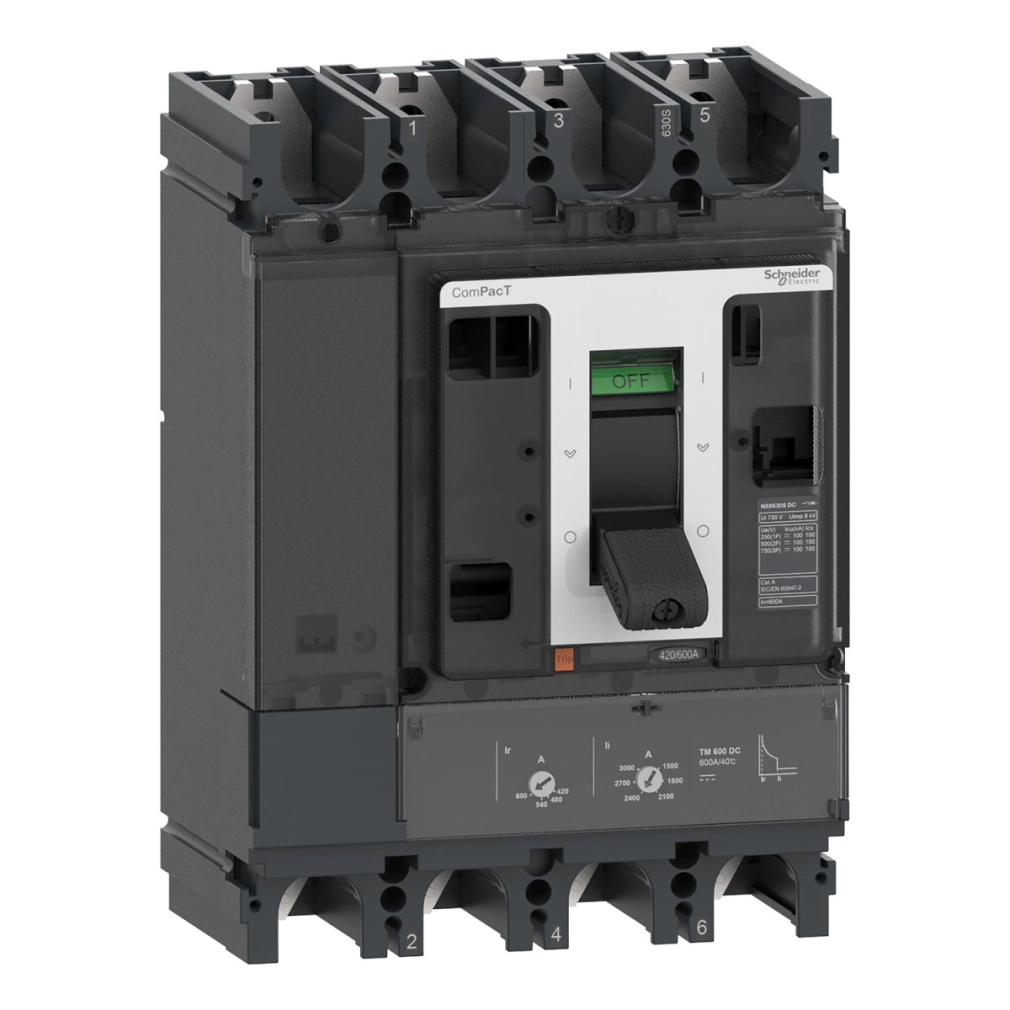 Schneider Electric ComPacT NSX (2021) - C63F4TM500D - Megszakító NSX500F DC, 36 kA 750 VDC, TM-DC kioldóegység, 500 A beállítás, 4P
