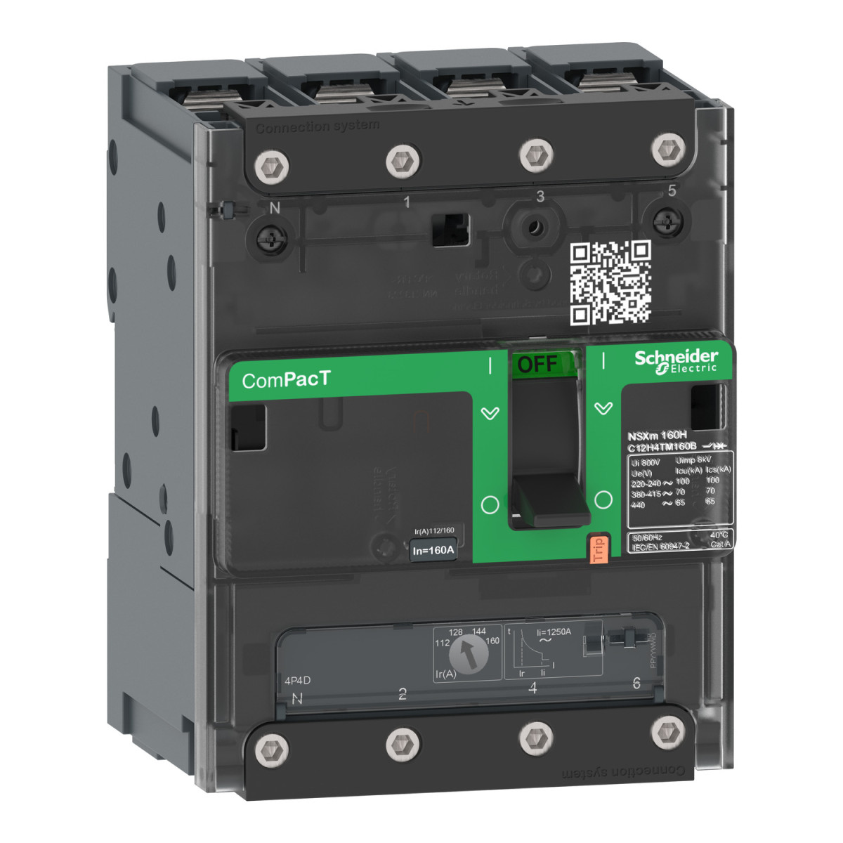 Ez egy ComPacT NSXm öntött házas megszakító, 40A, 25kA, 415VAC, minden kisfeszültségű szabványos alkalmazáshoz. Olyan új funkciókat kínál, mint az Everlink technológia, a DIN sínre és lemezre szerelési lehetőség. Kívülről látható új rugós segédeszközöket ágyaz be. A ComPacT NSXm az egyik legkisebb MCCB a piacon, 108 mm (sz) x 137 mm (h) x 80 mm (M). Ez egy 4 pólusú változat beágyazott termikus-mágneses kioldóegységgel. Biztosítja a nemzetközi szabványoknak (IEC 60947/CCC/EAC) és a tengeri elírásoknak való megfelelést.