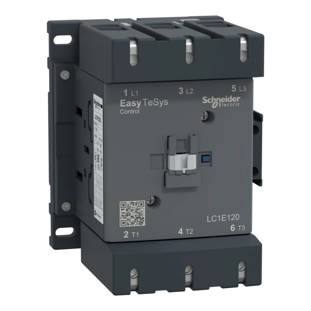 EasyPact TVS mágneskapcsoló 3p(3 NO), AC-3, <= 440 V 120A, 415 V AC tekercs. termékcsalád: EasyPact - termék neve: EasyPact TVS - termék vagy komponens típusa: mágneskapcsoló - készülék rövid megnevezése: LC1E - mágneskapcsoló alkalmazás: ellenálló töltés, motorvezérlés - felhasználási kategória: AC-1, AC-3 - pólusok megnevezése: 3P - pólus érintkező összetétel: 3 NO - le névleges üzemi áram: 120 A (<= 55 °C) AC AC-3 esetén főáramkör <= 440 V, 150 A (<= 40 °C) AC AC-1 esetén főáramkör <= 440 V - motorteljesítmény kW: 37 kW -220...230 V AC 50/60 Hz, 55 kW -380...400 V, 59 kW -415 V, 59 kW -440 V, 75 kW -500 V, 80 kW -660...690 V - magasság: 158 mm - szélesség: 120 mm - mélység: 132 mm - termék súlya: 2.3 kg. Előnyök : - Alapvető motorindítási és kapcsolási funkciókra tervezték, Könnyű kiválasztani, egyszerű és rugalmas, Könnyű installálni, könnyű rendelni, könnyű megérteni.. Alkalmazások: - Ohmos áramkörök kapcsolása, Dízel generátorok, AÁtkapcsoló rendszerekben nulla vezető leválasztására, Földelés nélküli vagy rosszul földelt rendszerek leválasztására, 2 pólus, AC1 alkalmazási kategória (2 pólus párhuzamos kötésben)....