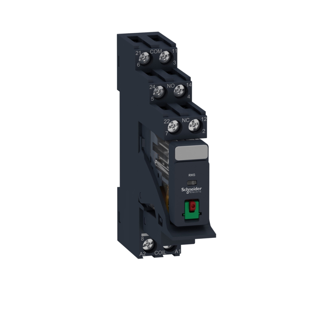 A Schneider Electric RXG21B7PV egy csúcsminőségű, előszerelt dugaszolható (plug-in) interfész relé foglalattal, amely a Harmony Elektromechanikus Relé termékcsalád része. Ez a kompakt vezérlőelem ideális választás ipari automatizálási rendszerekhez, kapcsolószekrényekhez és minden olyan alkalmazáshoz, ahol nagy megbízhatóságú vezérlőjeleket kell kapcsolni.
