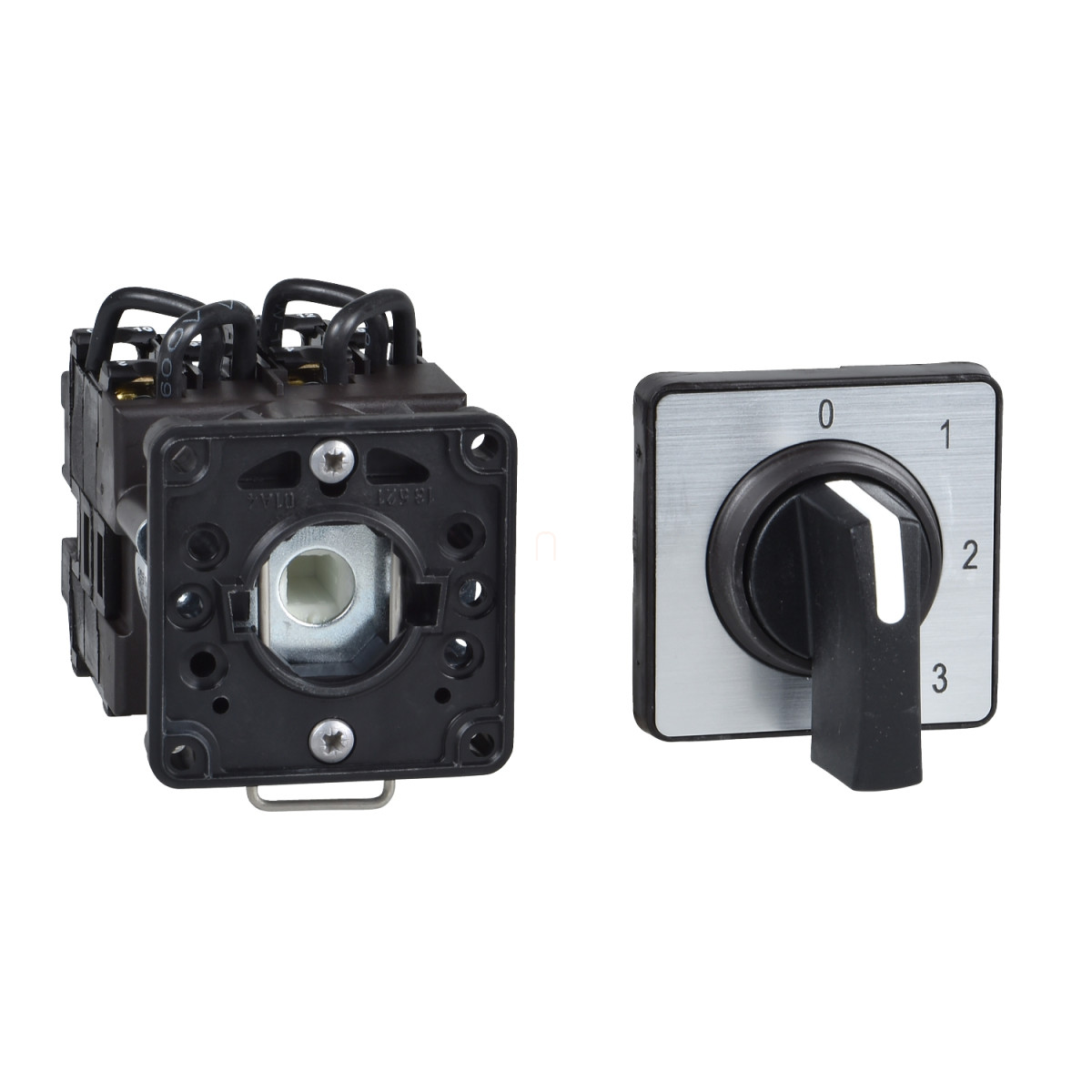 A K1C003QCH kapcsoló kiemelkedő műszaki paraméterekkel büszkélkedhet. A konvencionális szabad levegőn mérhető termikus árama 12A, míg zárt térben 10A. Az IP65-ös védettségének köszönhetően kiválóan ellenáll a pornak és a víz behatolásának, így mostoha körülmények között is megbízhatóan üzemel. A kapcsoló 45°-os kapcsolási szöggel rendelkezik, ami lehetővé teszi a pontos és egyértelmű pozicionálást 0° - 45° - 90° - 135° szögállásokban. A kapcsoló elülső részén található 45x45 mm-es előlap fém jelöléssel van ellátva, amelyen a 0-1-2-3 fekete számozás egyértelműen jelzi az aktuális kapcsolási pozíciót. A kezelhetőséget a 35 mm hosszú fekete fogantyú biztosítja.
