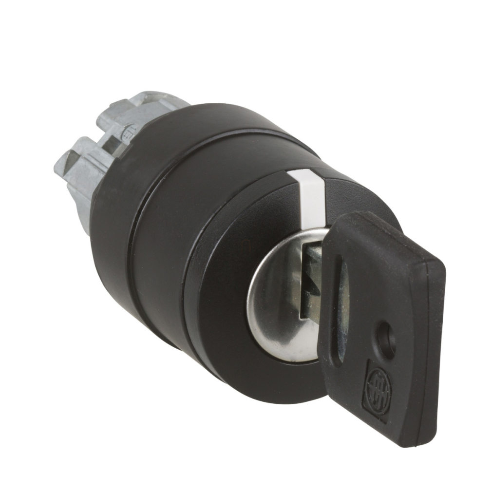 Schneider Electric Harmony XB4 - ZB4BG027 - fém választókapcsoló fej, Ø22, 455 kulcsos, jobboldali pozícióban kivehető, 2 állású, fekete perem