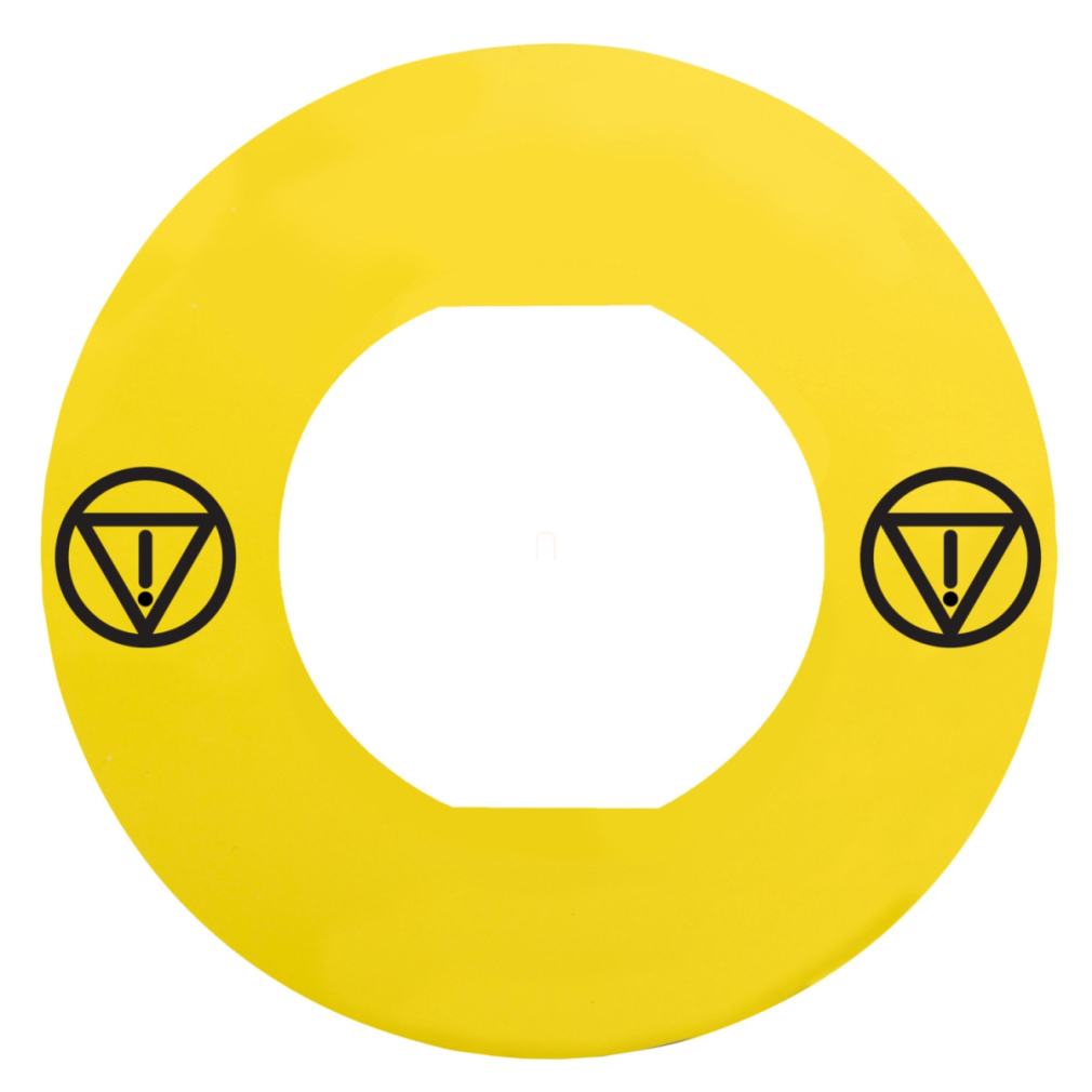 Schneider Electric Harmony XB4 - ZBY9140M -sárga köralakú felirati tábla, Ø60, vészleállítóhoz, ZBZ16** védőgallérhoz, logóval, felirat nélkül műszaki adatok