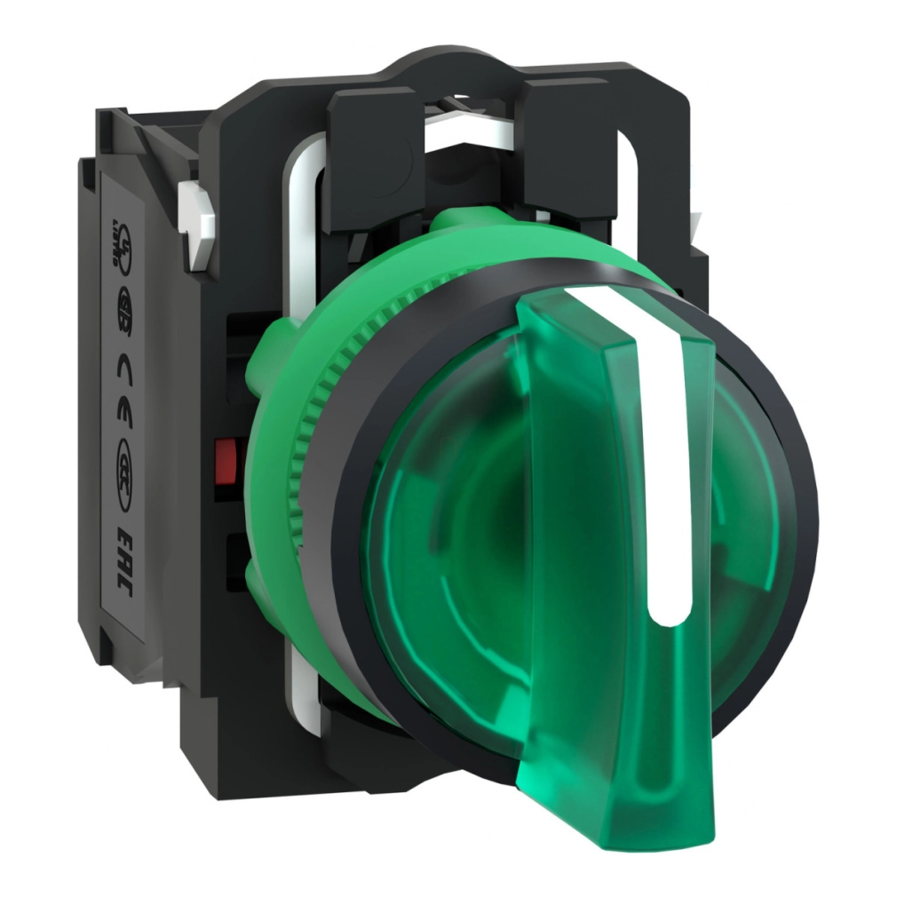 Schneider Electric Harmony XB5 - XB5AK133M5 - komplett műanyag LED világító választókapcsoló, Ø22, 3 állású, 230 VAC, 1NO+1NC, zöld