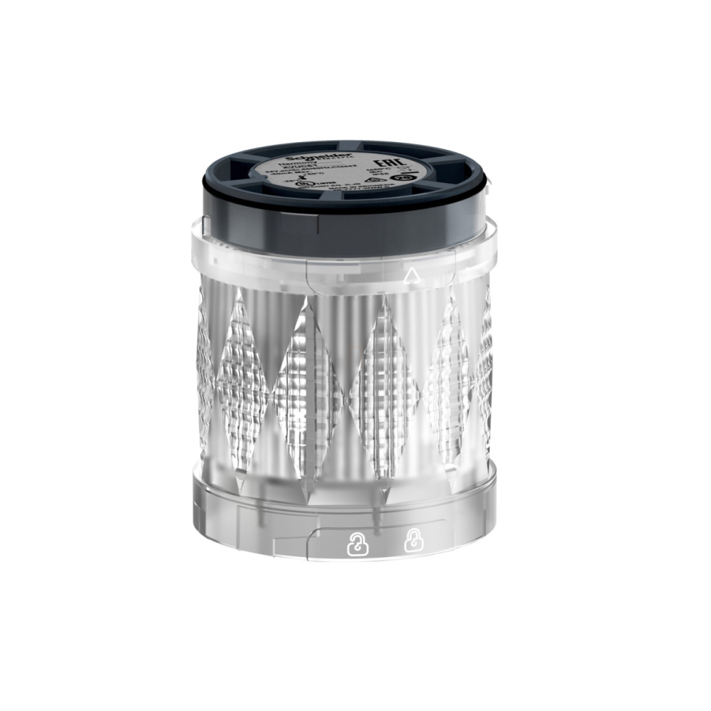 Ezt a fehér színű megvilágított egységet kiegészítőként tervezték, amely az alaphoz csatlakoztatható, és teljes toronyvilágítást hoz létre. Beépített LED-je villogó fénymintát kínál, lehetővé téve, hogy egyértelműen megjelenítse a gépek állapotát olyan alkalmazásokban, mint az autóipar, szerszámgépek, anyagmozgatás, csomagolás, összeszerelő állomások, szállítószalagok. Ütésálló, porálló, vízálló és rezgésálló az IP65-nek köszönhetően, így ideális zord környezetben való használatra.