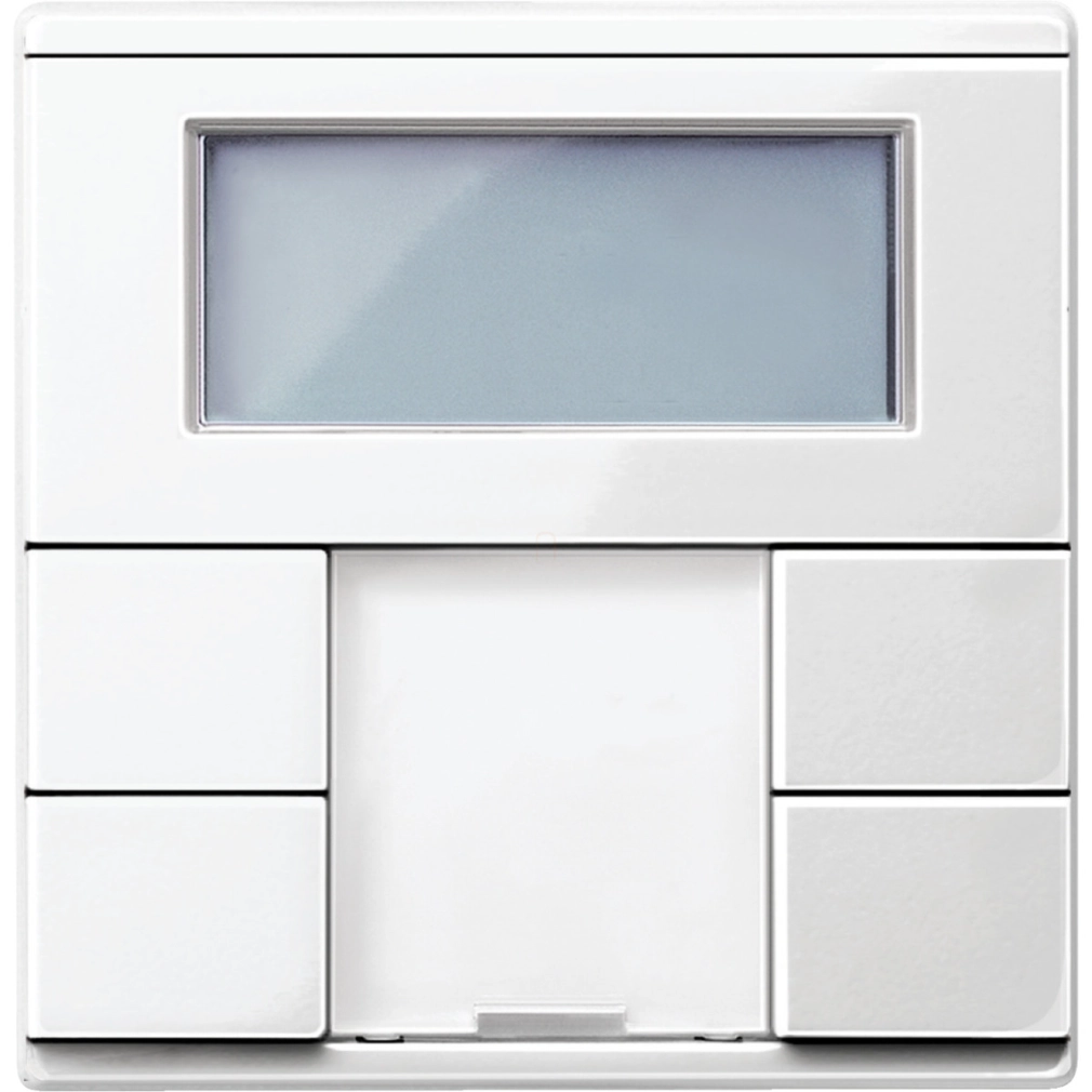 Nyomógombos 2-gang plus szobahőmérséklet-szabályozó egységgel. System M-hez. Kényelmes vezérlőegység 4 kezelőgombbal, működési és állapotkijelzővel és feliratozó mezővel. A működési kijelző tájoló lámpaként is használható. Szobahőmérséklet szabályozó egységgel és kijelzővel. 5 piros LED-del. A szobahőmérséklet-szabályozó egység használható fűtésre és hűtésre fokozatmentesen állítható KNX szelephajtásokkal, vagy kapcsolóaktorok és fűtőaktorok kioldására. Fehér háttérvilágítású kijelzővel pl. az idő, dátum, hőmérséklet és üzemmód megjelenítéséhez. Menü az alapértelmezett működési módok, alapjel érték, munkanap/munkaszüneti nap (külső trigger), kijelzési mód, idő, kapcsolási idők és a kijelző fényerejének beállításához. A nyomógombok szabadon paraméterezhetők nyomógombpárként (kettős felületű) vagy egyetlen nyomógombként. Integrált buszcsatolóval. A busz csatlakoztatása buszcsatlakozó terminálon keresztül történik. A nyomógombok funkciói: Kapcsolás, váltás, tompítás, vakvezérlés (relatív vagy abszolút), impulzusélek 1-, 2-, 4- vagy 8-bites táviratokat indítanak el (rövid és hosszú működés megkülönböztetése). Impulzusélek 2 bájtos telegramokkal (rövid és hosszú működés megkülönböztetése), 8 bites lineáris szabályozó, jelenet visszakeresés, jelenet mentés, letiltási funkciók. Időzített vezérlés szinkronizálással, értesítési funkciók, külső hőmérséklet értékek ciklikus leolvasása, ventilátorvezérlés, üzemmódok, mozgási alapértékek. A helyiséghőmérséklet-szabályozó funkciói: Szabályozó típusa: 2-fokozatú szabályozás, folyamatos PI szabályozó, kapcsoló PI szabályozó (PWM). Kimenet: folyamatos 0-100% tartományban vagy BE/KI kapcsolás. Szabályozó üzemmód: Fűtés egy szabályozó kimenettel. Hűtés egy vezérlő kimenettel. Fűtés és hűtés külön szabályozó kimenetekkel. Fűtés és hűtés egy vezérlő kimenettel. 2 fokozatú fűtés 2 szabályozó kimenettel. 2 fokozatú hűtés 2 vezérlő kimenettel. 2 fokozatú fűtés és hűtés 4 vezérlő kimenettel. Üzemmódok: Komfort, komfortbővítés, készenlét, éjszakai csökkentés, fagy-/hővédelem. Az összes alapjel áthelyezése, az összes alapjel-hőmérséklet és üzemmód mentése alaphelyzetbe állításkor, külső hőmérséklet-felügyelet, a vezérlési érték további kimenete 1 bájtos értékként a PWM-en. Busz csatlakozó terminállal és tartólemezzel. Csavar a szétszerelés elleni védelemhez. Védőburkolattal a vakolathoz. Anyaga: hőre lágyuló briliáns. Szín: polárfehér, fényes.