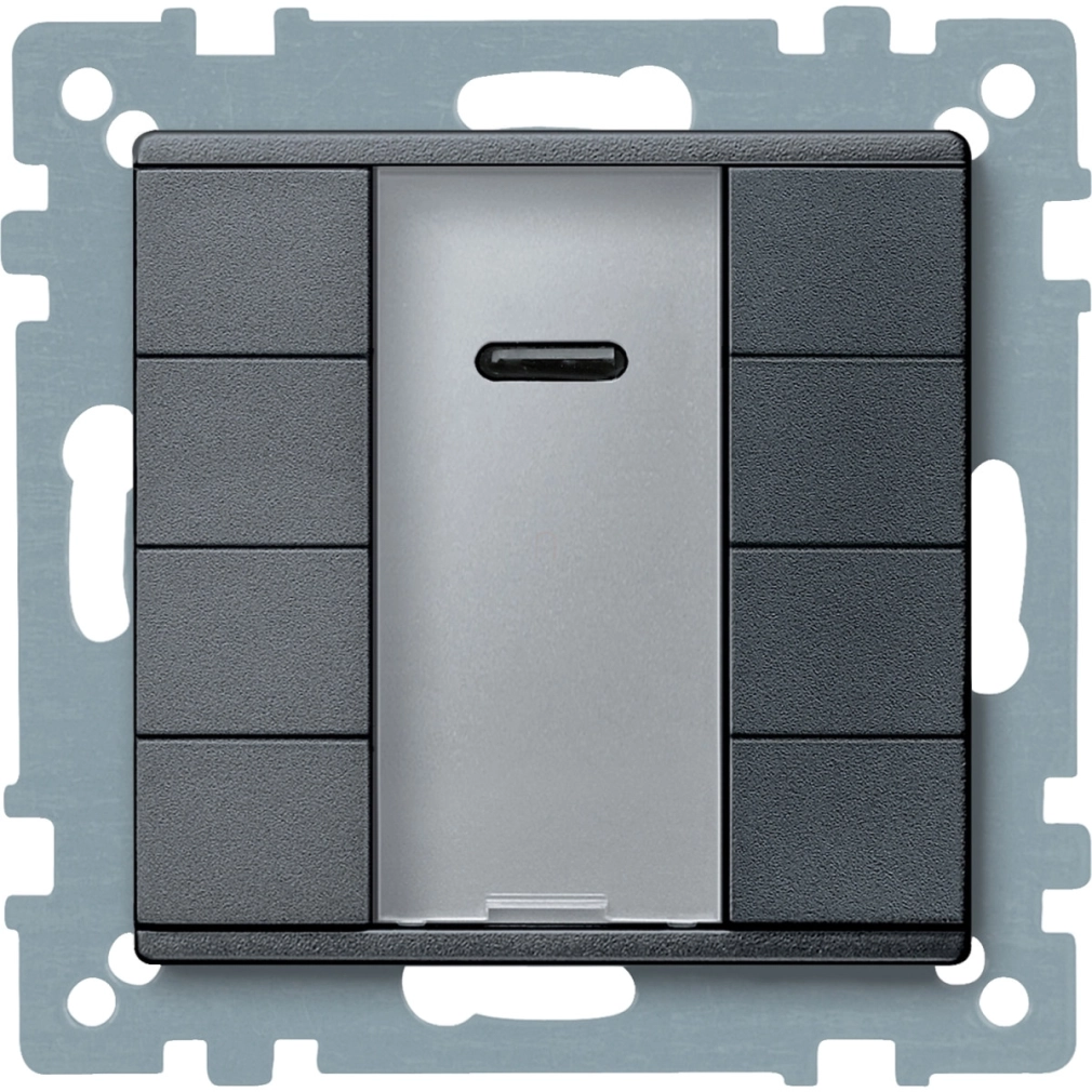 A nyomógomb összesen 8 funkciógombbal rendelkezik, amelyek mindegyike egyedileg programozható különféle feladatokra: világításvezérlés, redőnymozgatás, jelenetkezelés, vagy akár hőmérséklet-szabályozás. A beépített infravörös vevőegység tovább bővíti a vezérlési lehetőségeket, lehetővé téve a távirányítóval történő működtetést is. A nyomógomb minden egyes funkciója LED visszajelzéssel rendelkezik, így a felhasználó mindig pontosan láthatja az aktuális állapotot. A készüléken található feliratozási lehetőség (legend holder) megkönnyíti az egyes gombok funkcióinak azonosítását a mindennapi használat során.