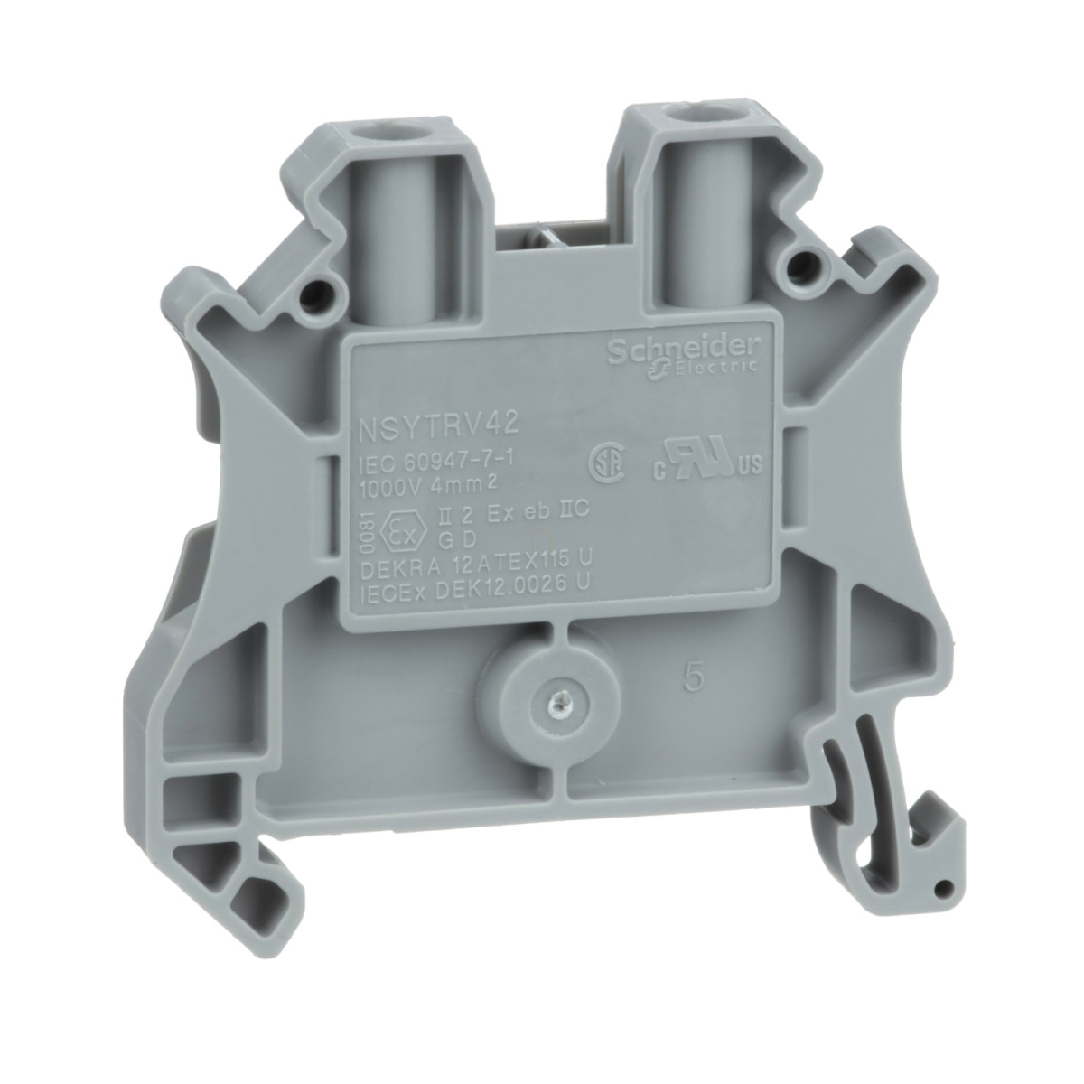 A Schneider Electric NSYTRV42 sorkapocs 1000 V névleges üzemi feszültséggel (conforming to EN/IEC 60947-7-1) és 32 A névleges áramerősséggel rendelkezik, míg az UL és CSA szabványok szerint 600 V névleges feszültségre és 30 A névleges áramerősségre van hitelesítve. A termék konstrukciója clip-on rögzítési módot biztosít, ami megkönnyíti a gyors és egyszerű telepítést. A 47,7 mm hosszú, 6,2 mm széles és 47,5 mm magas kompakt kialakítás ideális helytakarékos alkalmazásokhoz.