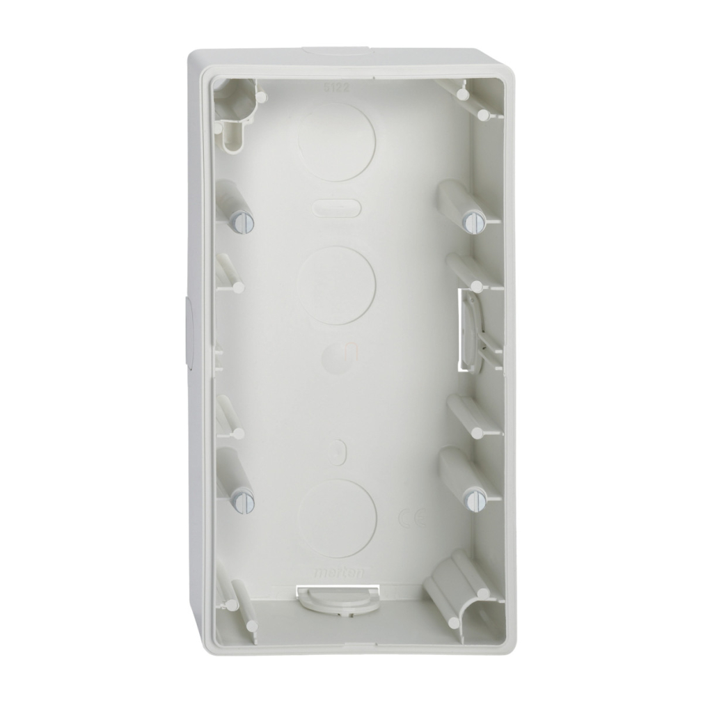 \nMERTEN Kettes kiemelődoboz, M-Smart/Artec, polárfehér. termékcsalád: Merten Artec, Merten M-Smart - Szín: Artec, M-Smart - termék vagy komponens típusa: felszíni szerelésű ház - sorolhatóság: 2-es sorolás - színes árnyalat: polárfehér, fényes - színkód: RAL 9010. Előnyök : Nemes felületkezelés Retro dizájn Kézi csiszolás.. Alkalmazások: Szabvány 60mm-es fali (gipszkartonfal is) süllyesztődobozba szerelhető.... Előnyök : Határtalan lehetőségek, A Merten egy olyan nemzetközi CEE 60 termékcsalád, amely minden szükséges csatlakozótípussal rendelkezik,. Választékos keret kialakítással, szín és dizájn változatokban kapható., Több mint 150 funkciót kínál villamoshálózatunk kialakításához: világításvezérléséhez, dugaljakhoz, gyengeáramú hálózathoz, redőnyök és az árnyékolók vezérléséhez, a hőmérséklet szabályozásához és a szállodai és kórházi alkalmazások megoldásaként, A Merten a KNX rendszerhez is nyújt megoldást: nyomógombokkal, a kijelzős termosztátokkal és a mozgás- és jelenlétérzékelőkkel.... Alkalmazások: A Merten család megoldásai használhatók minden lakóépületben és minden egyéb épületben, pl. Iskolákban, irodákban és szállodákban is....