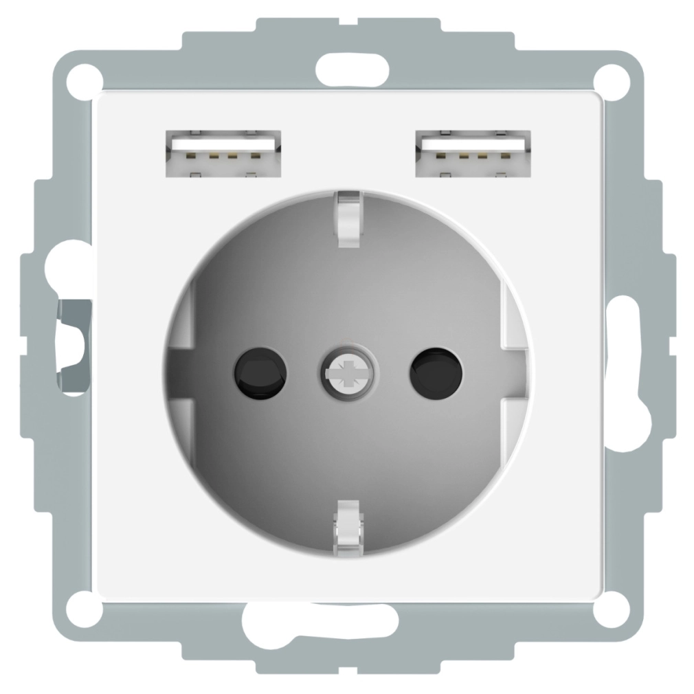 Schneider Electric Merten System M - MTN2366-0319 - 2P+F aljzat, biztonsági zsaluval, A+A USB töltővel, rugós, 16A / 2.4A, System-M, polárfehér