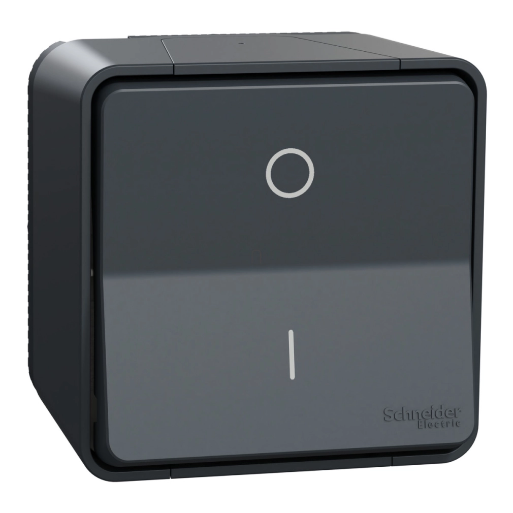 A Schneider Electric Mureva Styl sorozatú MUR35033 kódszámú kétpólusú kapcsoló egy komplett, felületre szerelhető villamos szerelvény, amely mind beltéri, mind kültéri környezetben tökéletesen használható. Ez a prémium minőségű, 2-pólusú 1-irányú kapcsoló antracitszürke (RAL 7016) színben kapható, amely tökéletesen illeszkedik a modern épületek esztétikájához, miközben robusztus kialakításával a legkeményebb környezeti feltételeknek is ellenáll.