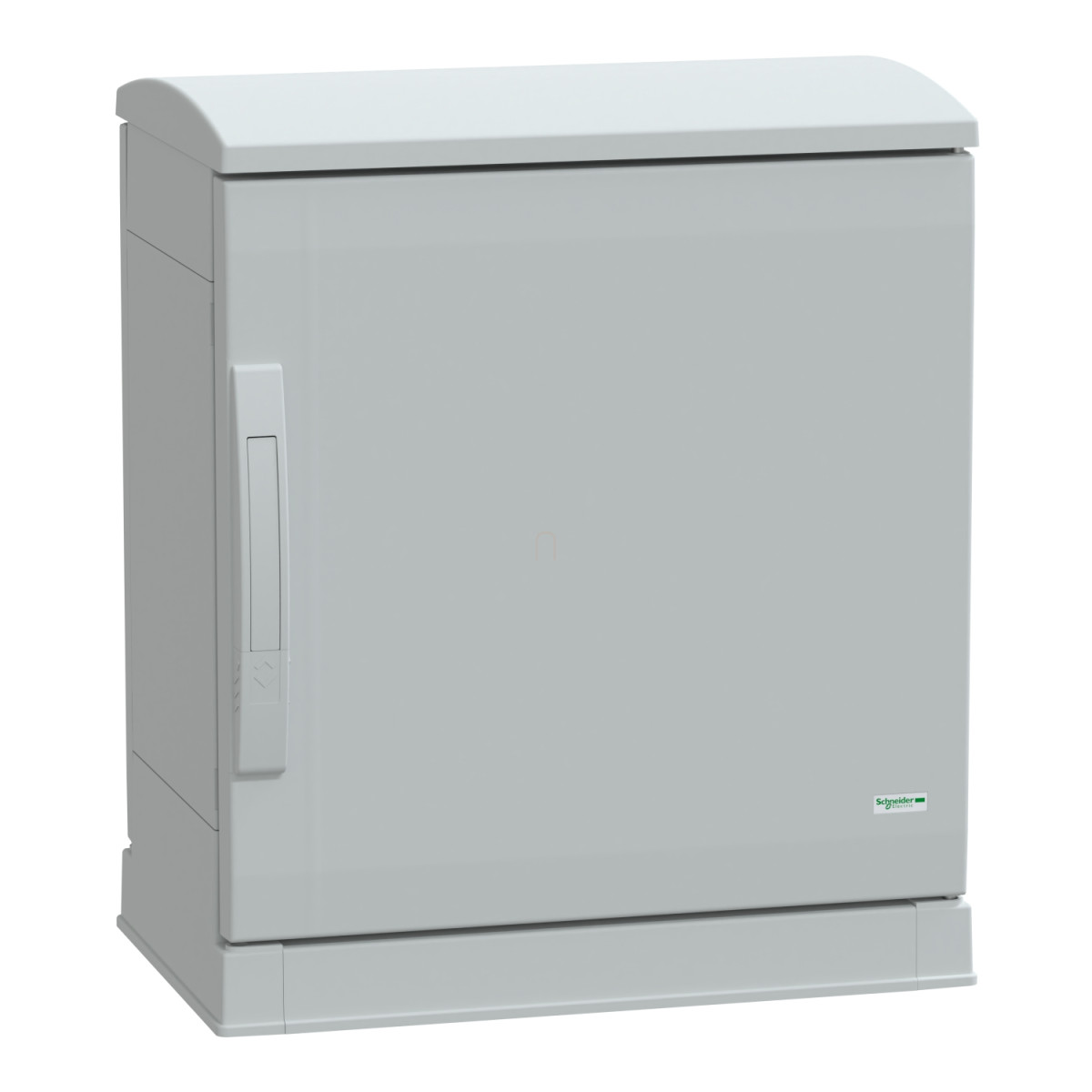 Poliészter szekrény védőtetővel+magasító kerettel. termékcsalád: Thalassa - termék neve: Thalassa PLA - készülékalkalmazás: többcélú - termék vagy komponens típusa: megfelelő szekrény - készülék rövid megnevezése: PLAZT - szekrény névleges magassága: 500 mm - szekrény névleges szélessége: 500 mm - szekrény névleges mélysége: 320 mm - készülék összetétel: 1 ajtó, 1 alsó elem, 1 felső elem, 1 hátsó panel, 1 porcelán alátét, 1 tető, 2 oldalsó rész. Előnyök : - áramütés kockázata nem áll fenn., Kültéren és beltéren egyaránt használható., Ellenáll a rossz időjárási viszonyoknak., Nagy hőingadozás esetében is alkalmazható., Könnyen megmunkálható. A megmunkálás nem okoz korróziót., Nem tartalmaz halogént., A kis súly miatt könnyen beszerelhető., Hosszú élettartam karbantartás nélkül., Ellenáll a behatásoknak., Tetővel rendelkező változat kültéri használatra, a tömítés minőségének a megőrzésével., 65mm-es változat integrált lábazat és nyitott alsórésszel a bejövő kábelekhez., Széles méretválaszték (40 különböző méret!)., Válaszható ajtó (teli, festéktaszító bordás felület, üvegezett)., Többféle telepítési lehetőség (föld, lábazaton, falon)., Csatolási lehetőségek a moduláris felépítésnek köszönhetően., Testre szabás: szín, forgácsolás, szerelési kiegészítők, zárcsere, nagyobb mélység. Testre szabás: szín, megmunkálás, kiegészítők összeszerelése, zárak, igény szerinti nagyobb mélység kialakítása., 4 változat kombinálása 3 ajtótípussal és hátsó ajtóval a panel helyett. ZM 200mm talprész. Védelem a vízemelkedéssel szemben, hozzáférés, kábelvezetés.. Alkalmazások: - Testre szabás: szín, megmunkálás, kiegészítők összeszerelése, zárak, igény szerinti kialakítása....